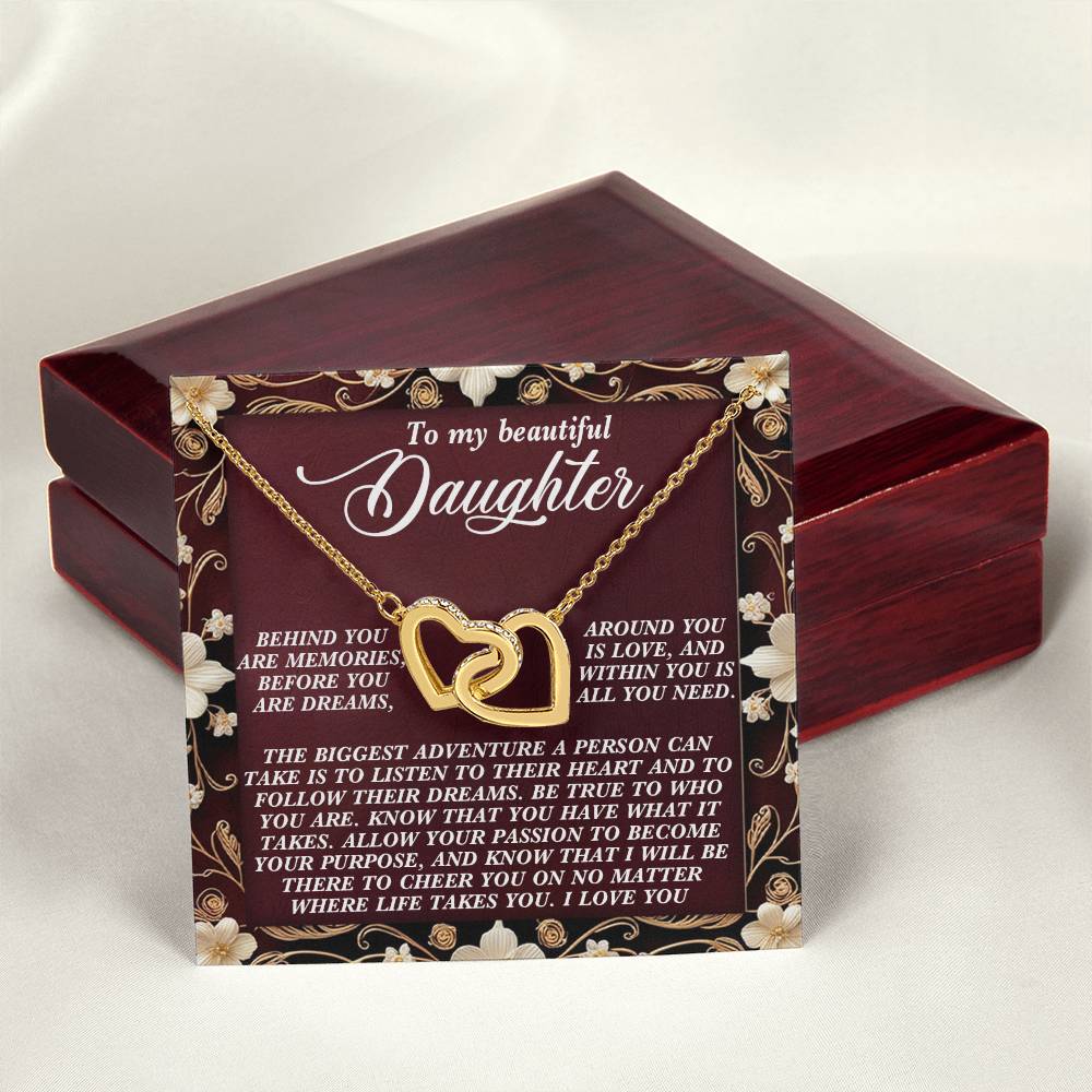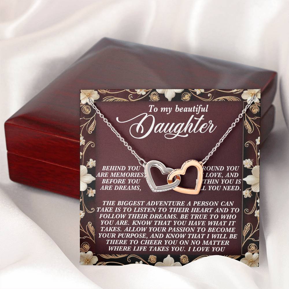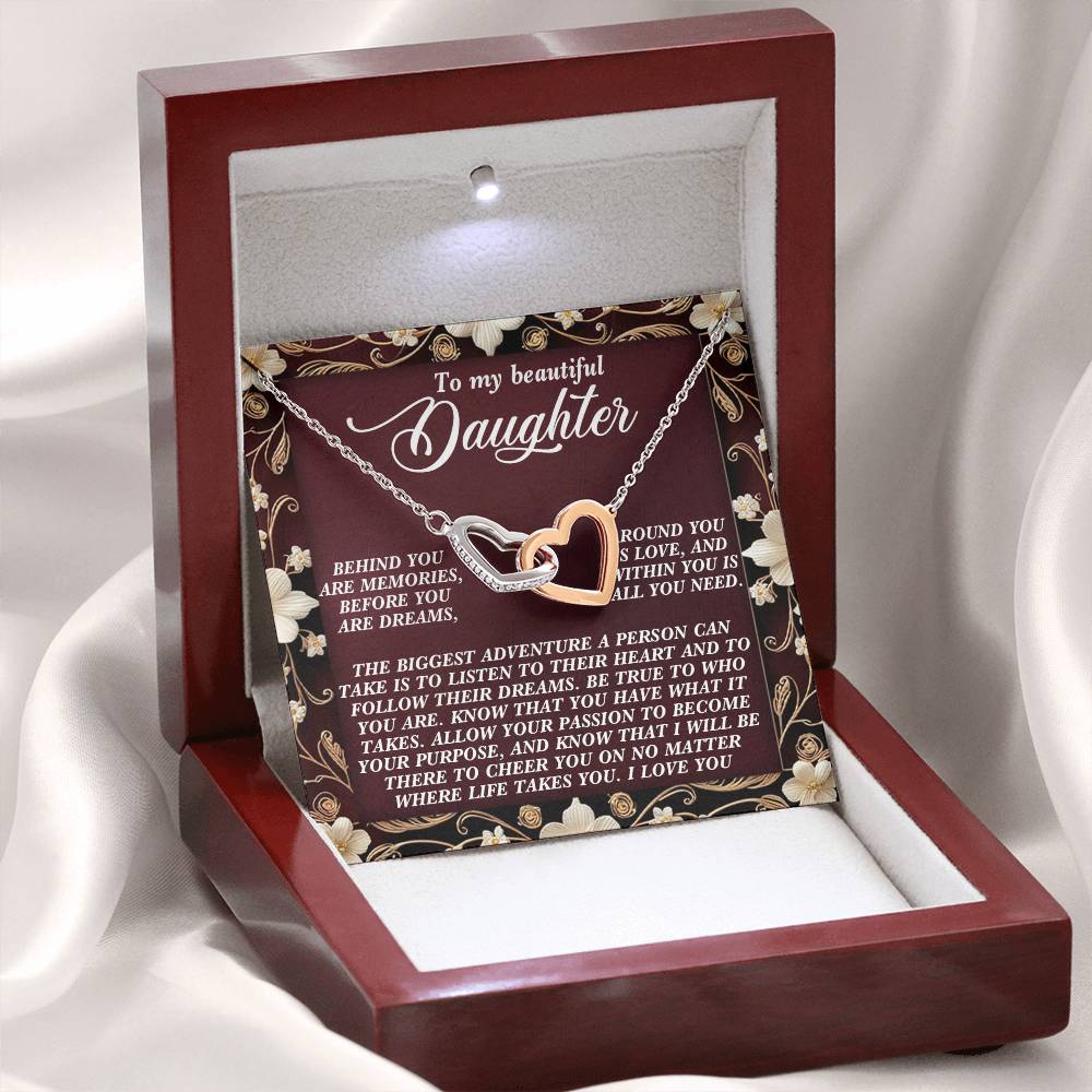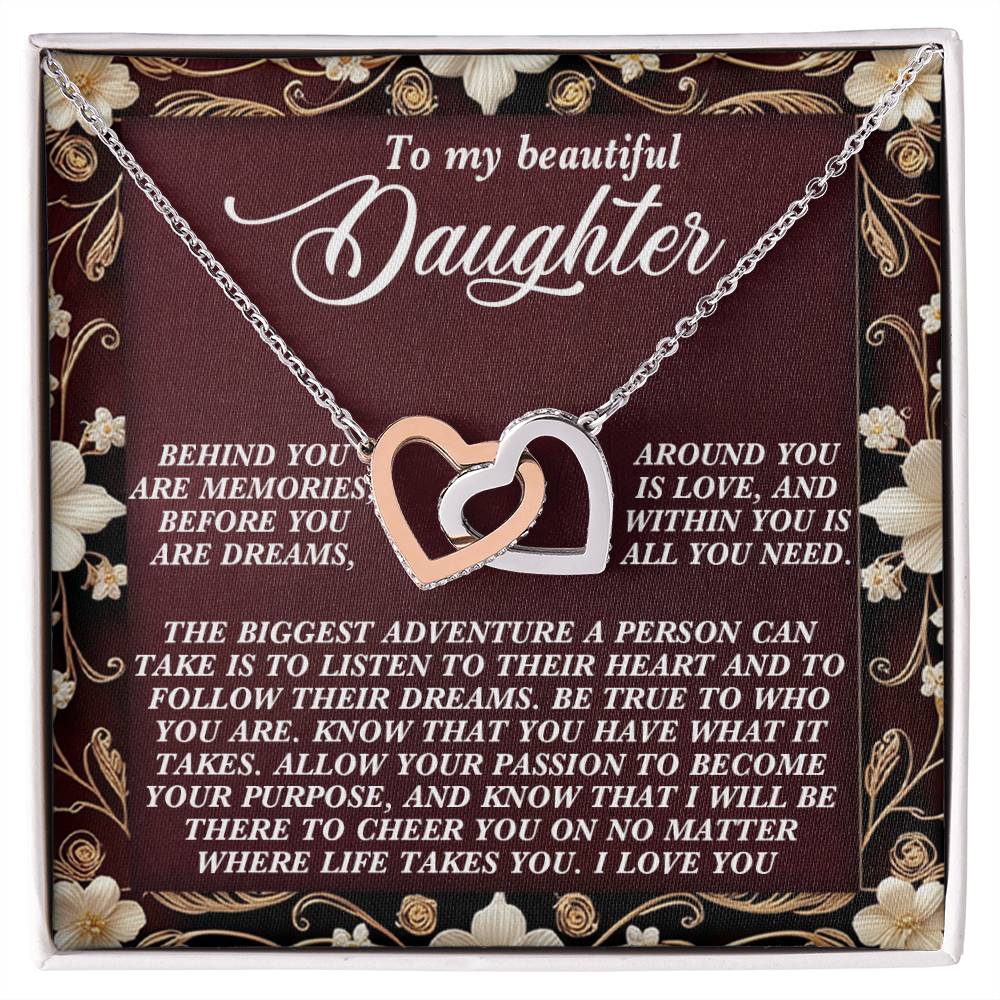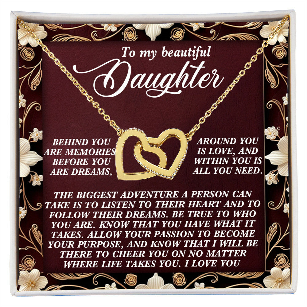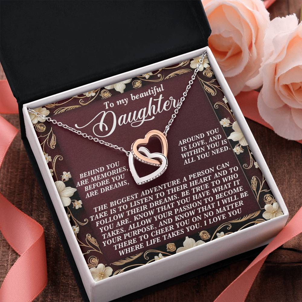 Featuring two lovely hearts embellished with cubic zirconia crystals, this Interlocking Hearts necklace is the perfect accessory for everyday wear. It's a memorable and very special birthday, graduation, wedding, Christmas, or any holiday occasion gift for your lovely daughter.,