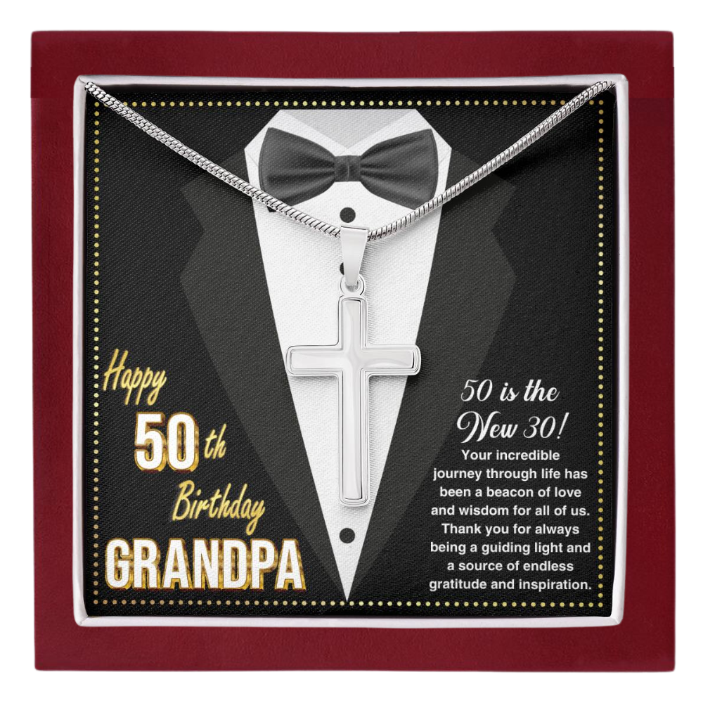 JGF Jewelry Gifts for Family Happy 50th Birthday Grandpa Cross Necklace For Men Turning 50 Card