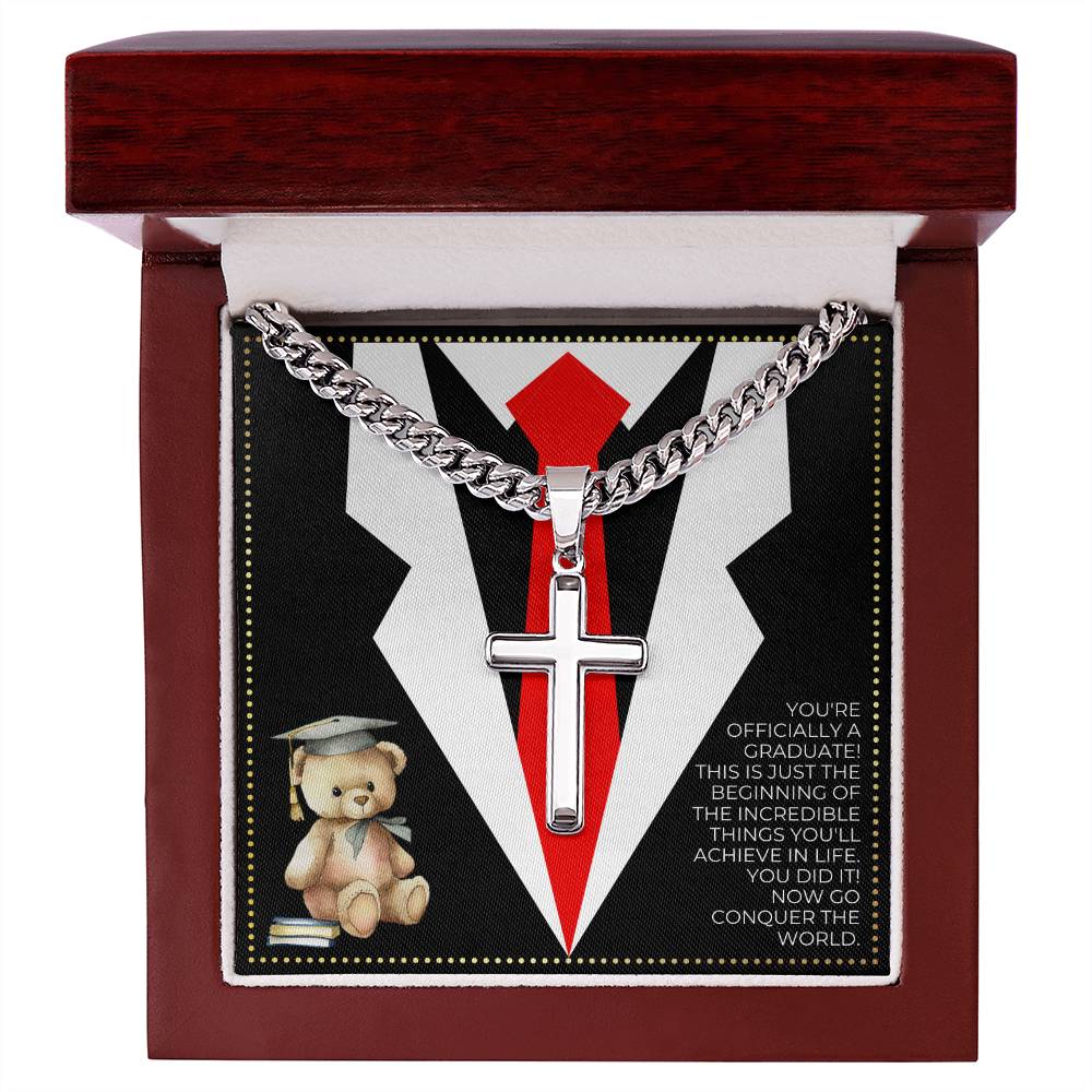 Wear your faith proudly with this Cuban Chain with Artisan Cross Necklace. Perfect for special occasions or everyday wear, this makes a wonderful gift idea for you or your loved one. It will surely be treasured for years to come!