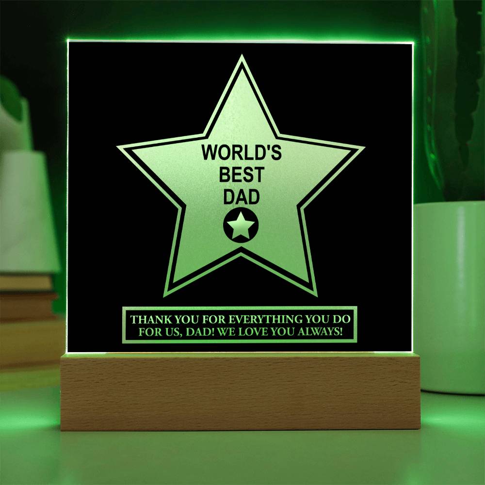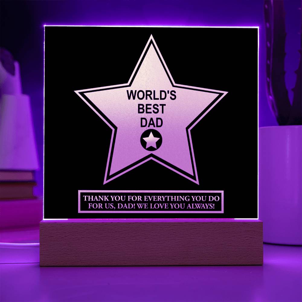 Your plaque will be crafted from premium acrylic with a professionally printed design for a polished look. It comes with a stylish wooden LED base, and you can choose between a USB plug-in option OR a cordless battery-operated option (requires 2 AAA batteries, not included). Both LED bases feature 7 vibrant colors, allowing the user to customize the lighting with various color changes and dynamic cycles.