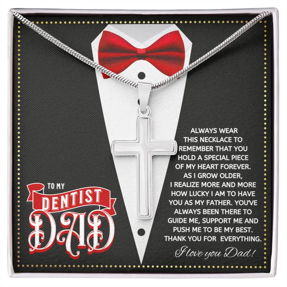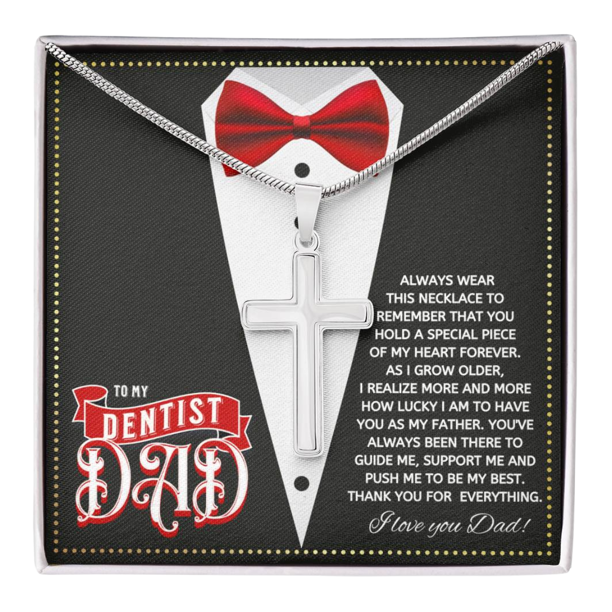 JGF Jewelry Gifts for Family Cross Necklace For Men Silver To My Dentist Dad