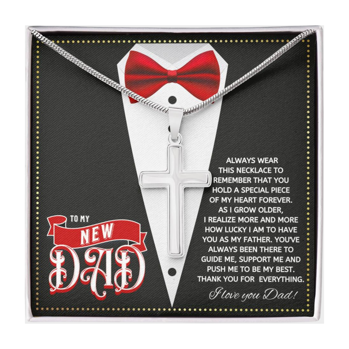 JGF Jewelry Gifts for Family Cross Necklace For Men Silver To My New Step Bonus Dad