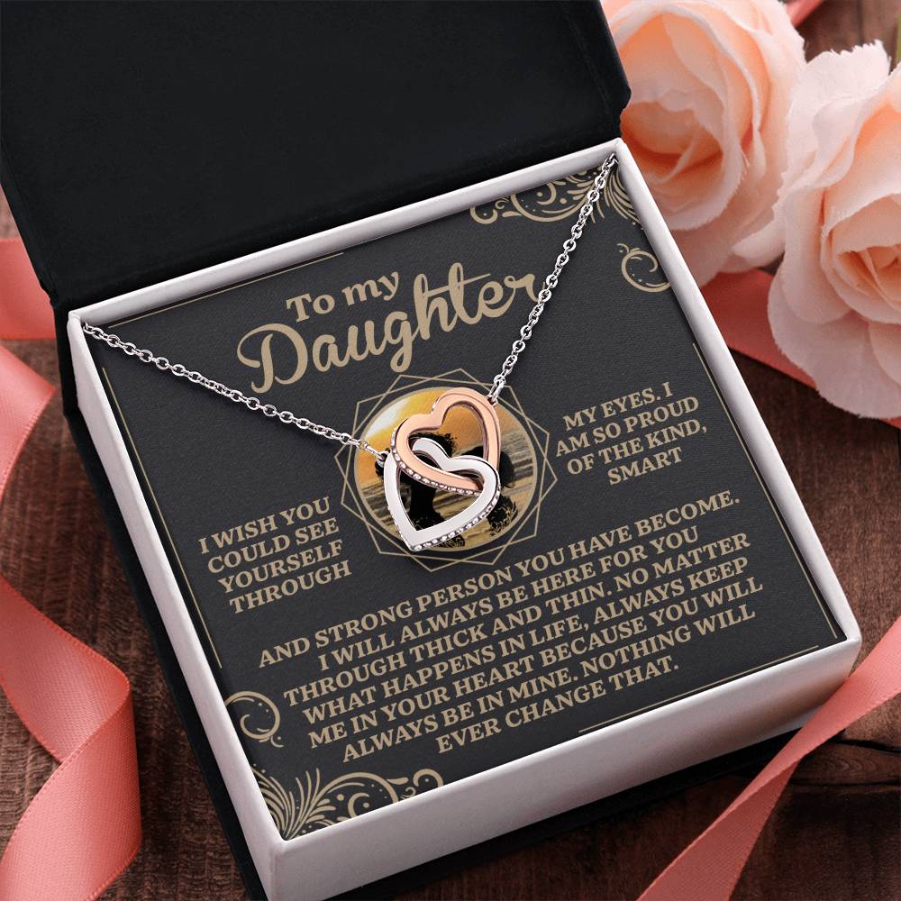 Featuring two lovely hearts embellished with cubic zirconia crystals, this Interlocking Hearts necklace is the perfect accessory for everyday wear. It's a memorable and very special birthday, graduation, wedding, Christmas, or any holiday occasion gift for your lovely daughter.,