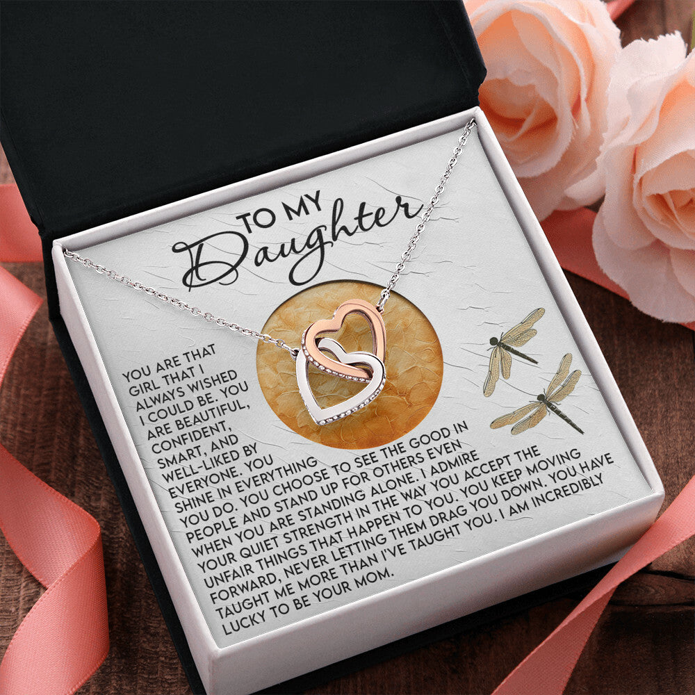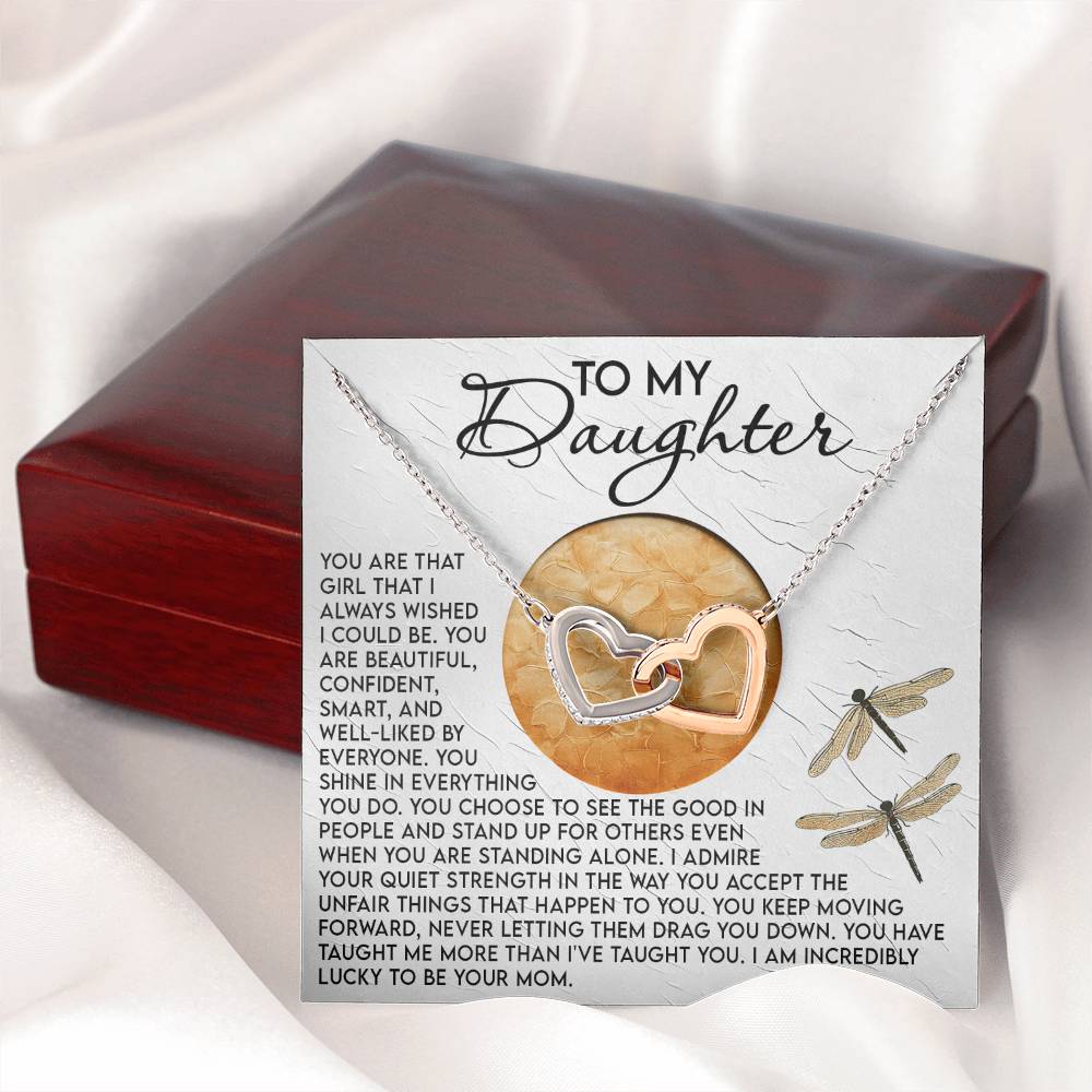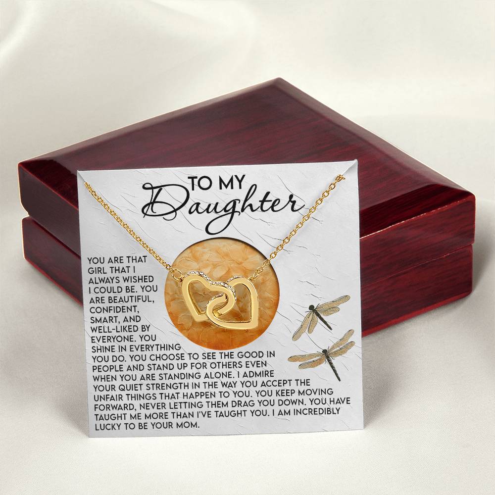 Featuring two lovely hearts embellished with cubic zirconia crystals, this Interlocking Hearts necklace is the perfect accessory for everyday wear. It's a memorable and very special birthday, graduation, wedding, Christmas, or any holiday occasion gift for your lovely daughter.,