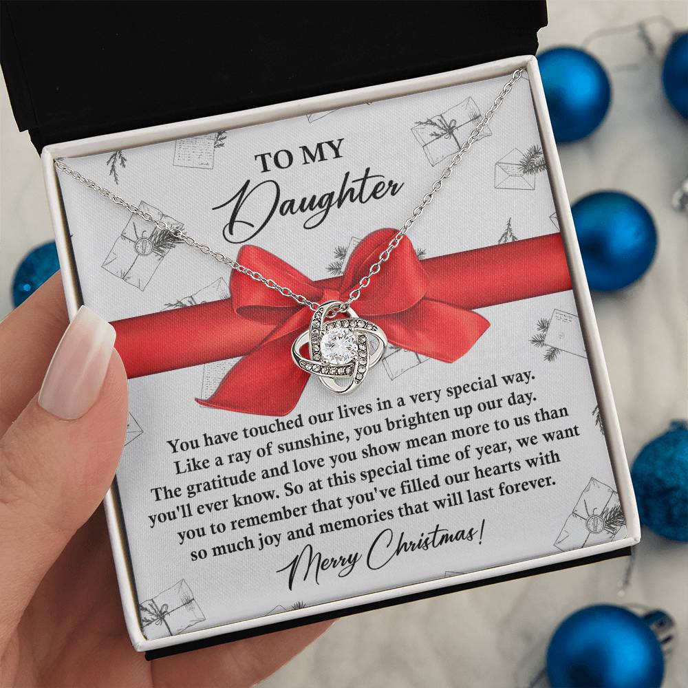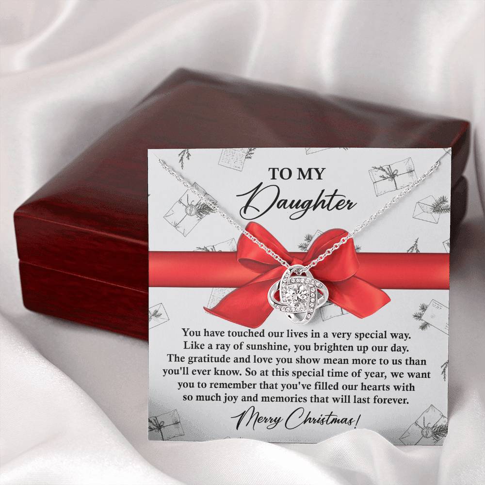 Imagine her reaction receiving this beautiful Love Knot Necklace. Representing an unbreakable bond between two souls, this piece features a beautiful pendant embellished with premium cubic zirconia crystals. Surprise your loved one with this gorgeous gift today!