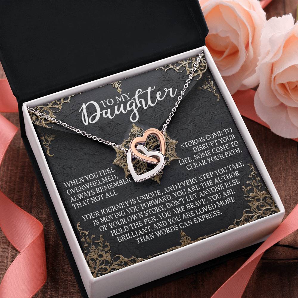 Featuring two lovely hearts embellished with cubic zirconia crystals, this Interlocking Hearts necklace is the perfect accessory for everyday wear. It's a memorable and very special birthday, graduation, wedding, Christmas, or any holiday occasion gift for your lovely daughter.,