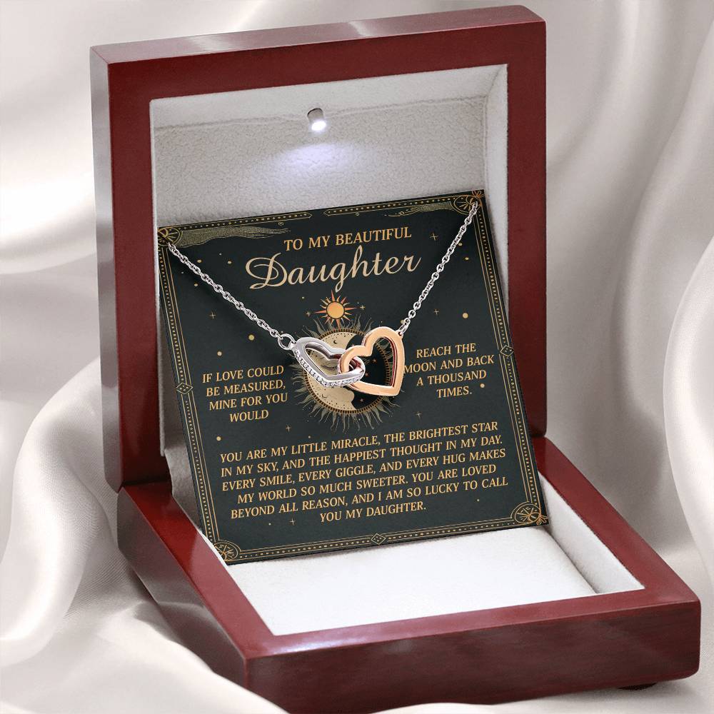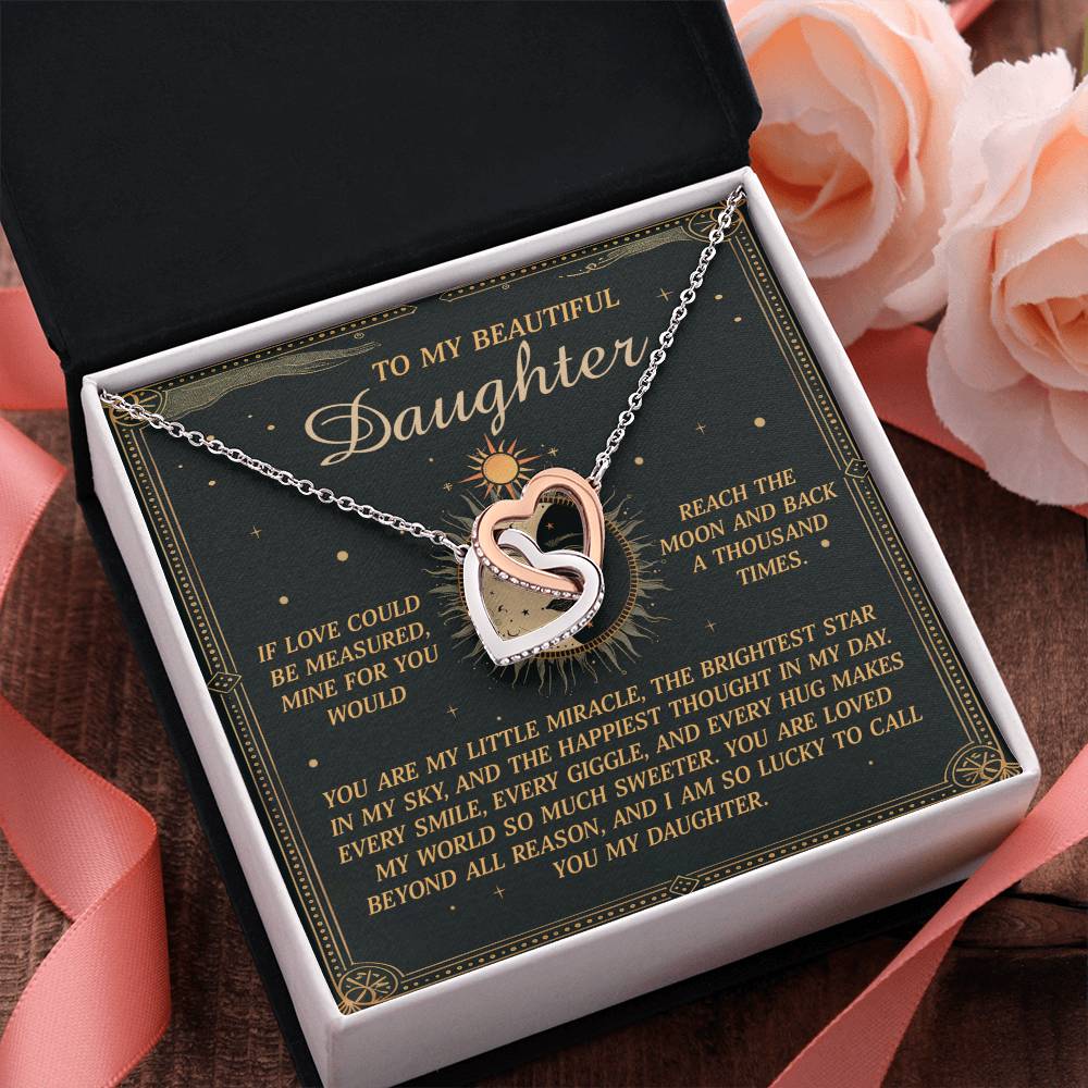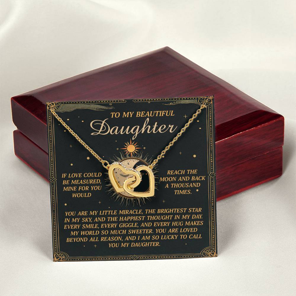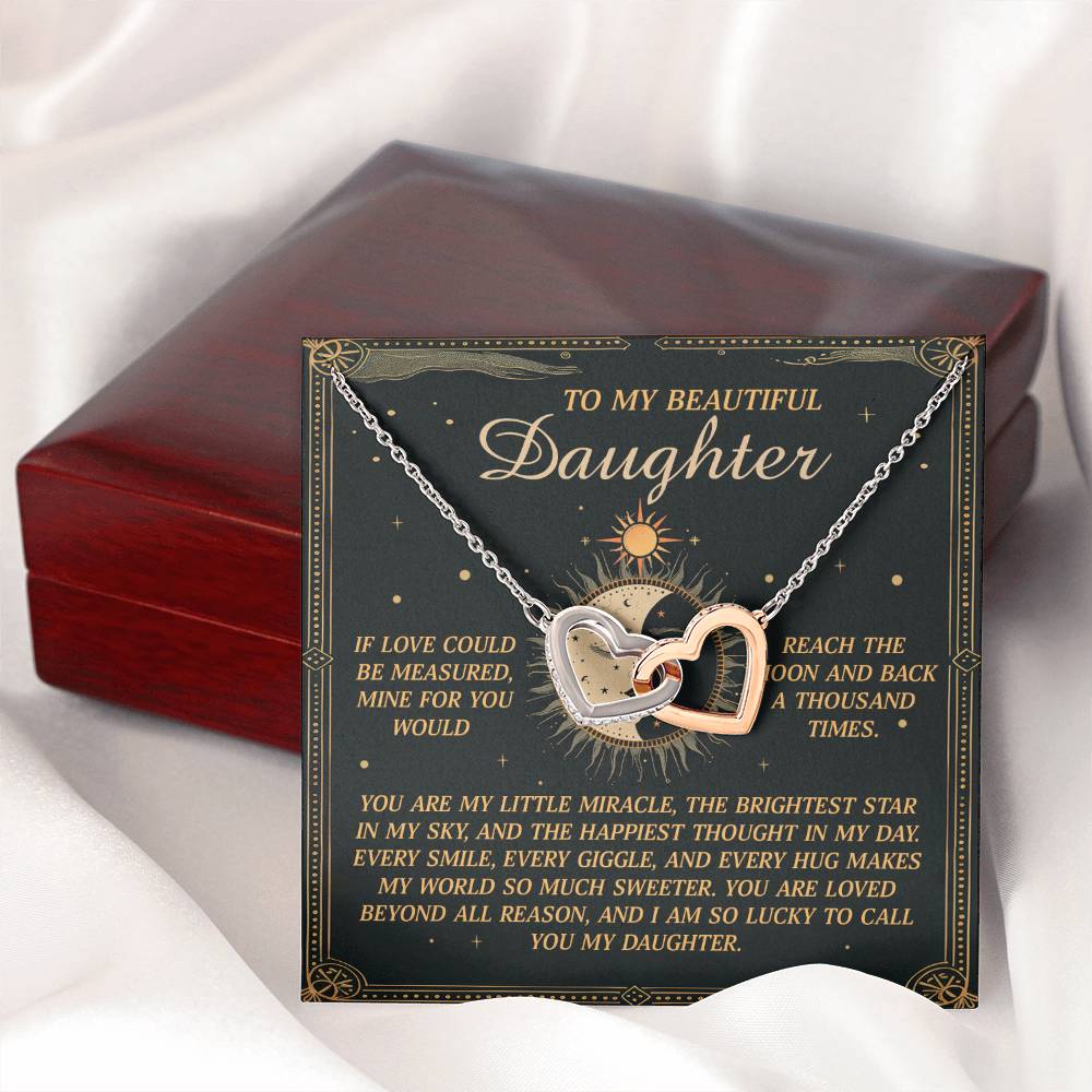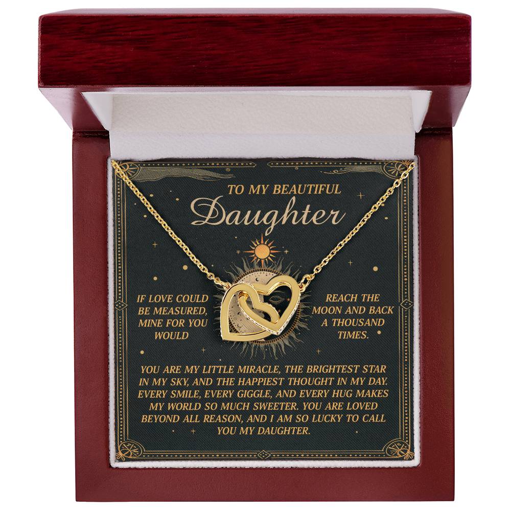 Featuring two lovely hearts embellished with cubic zirconia crystals, this Interlocking Hearts necklace is the perfect accessory for everyday wear. It's a memorable and very special birthday, graduation, wedding, Christmas, or any holiday occasion gift for your lovely daughter.,