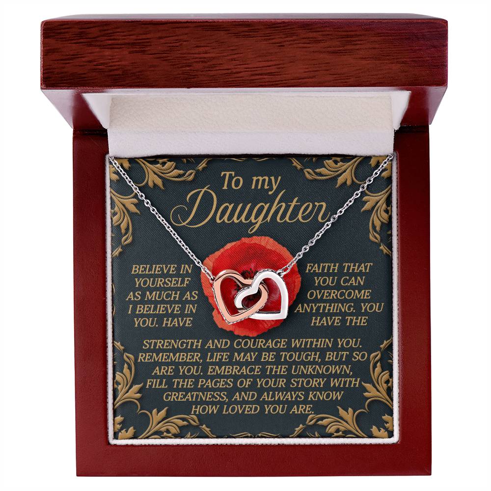 Featuring two lovely hearts embellished with cubic zirconia crystals, this Interlocking Hearts necklace is the perfect accessory for everyday wear. It's a memorable and very special birthday, graduation, wedding, Christmas, or any holiday occasion gift for your lovely daughter.,