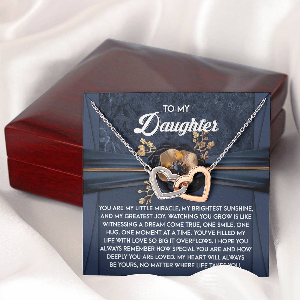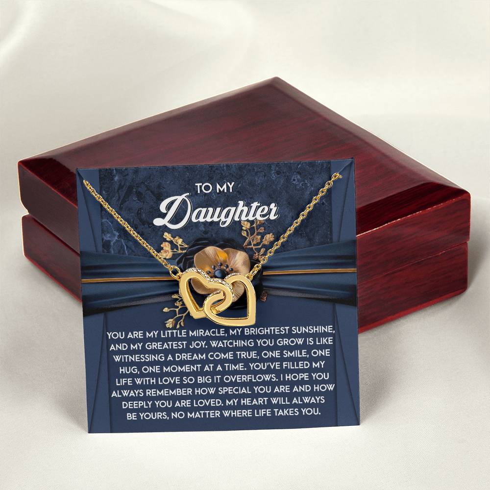 Featuring two lovely hearts embellished with cubic zirconia crystals, this Interlocking Hearts necklace is the perfect accessory for everyday wear. It's a memorable and very special birthday, graduation, wedding, Christmas, or any holiday occasion gift for your lovely daughter.,
