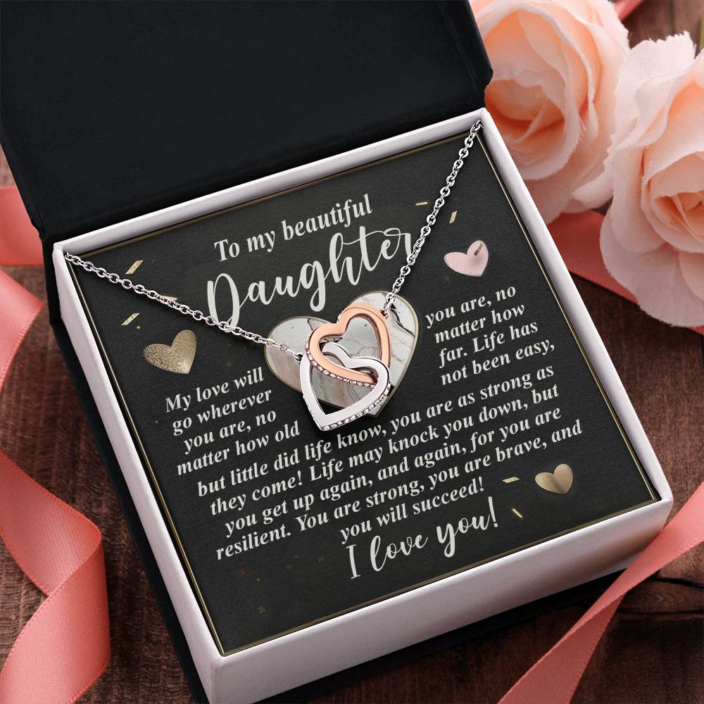 Featuring two lovely hearts embellished with cubic zirconia crystals, this Interlocking Hearts necklace is the perfect accessory for everyday wear. It's a memorable and very special birthday, graduation, wedding, Christmas, or any holiday occasion gift for your lovely daughter.,