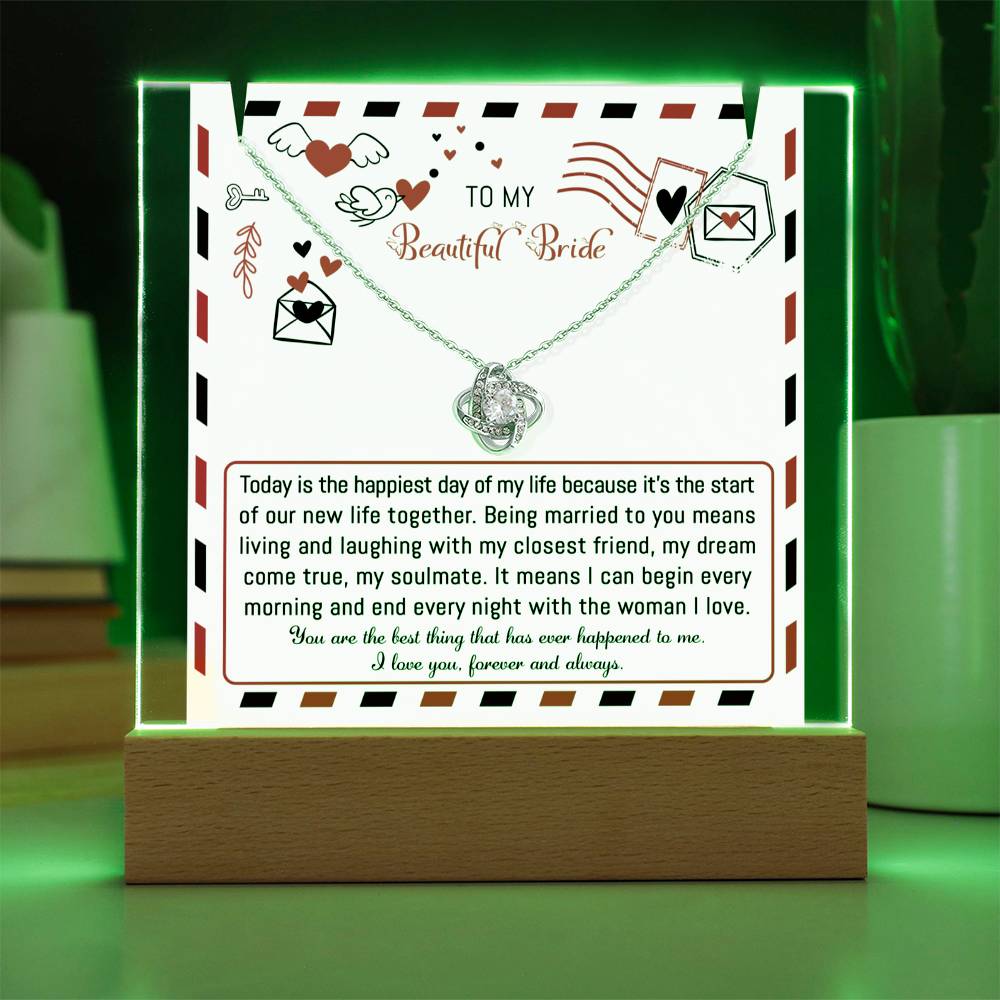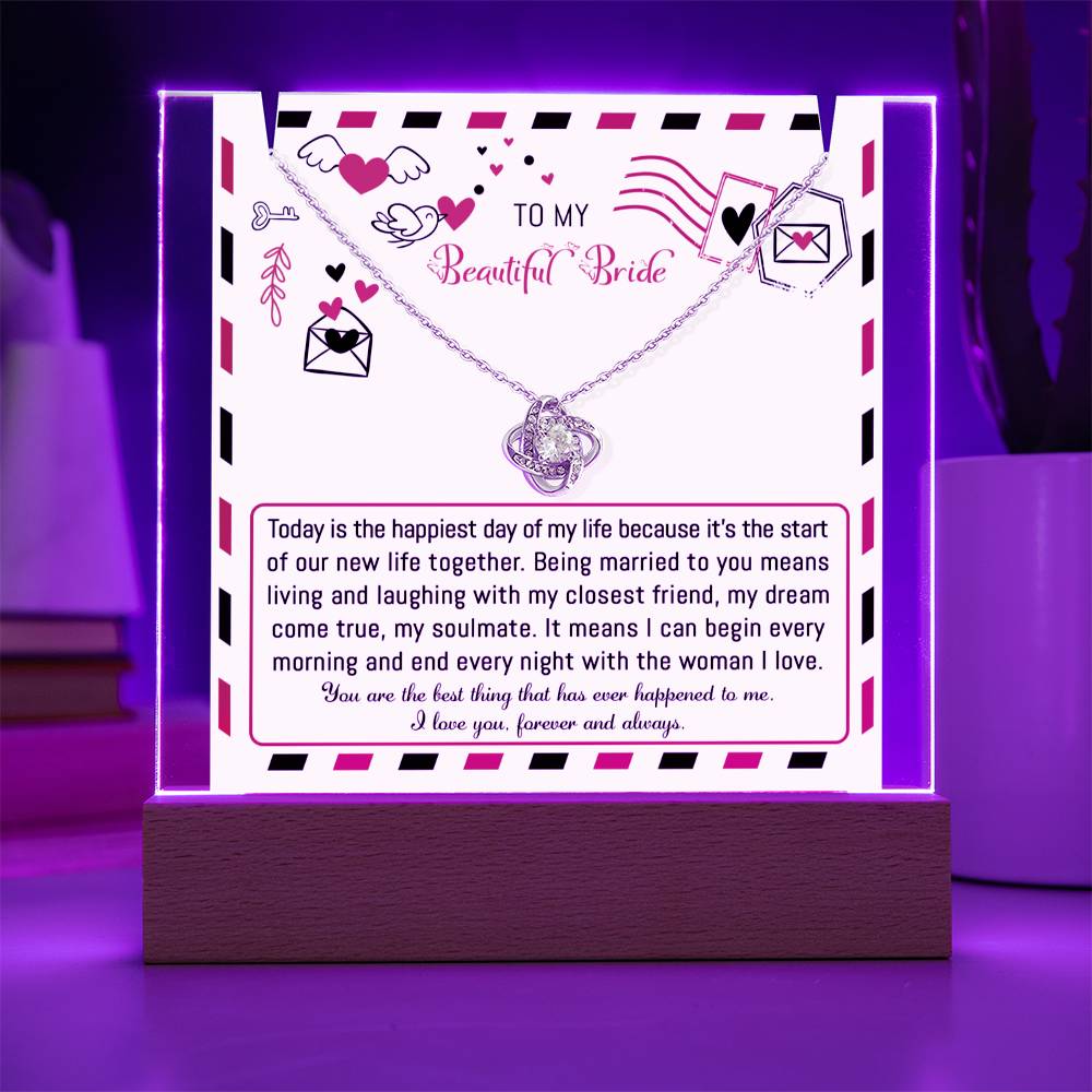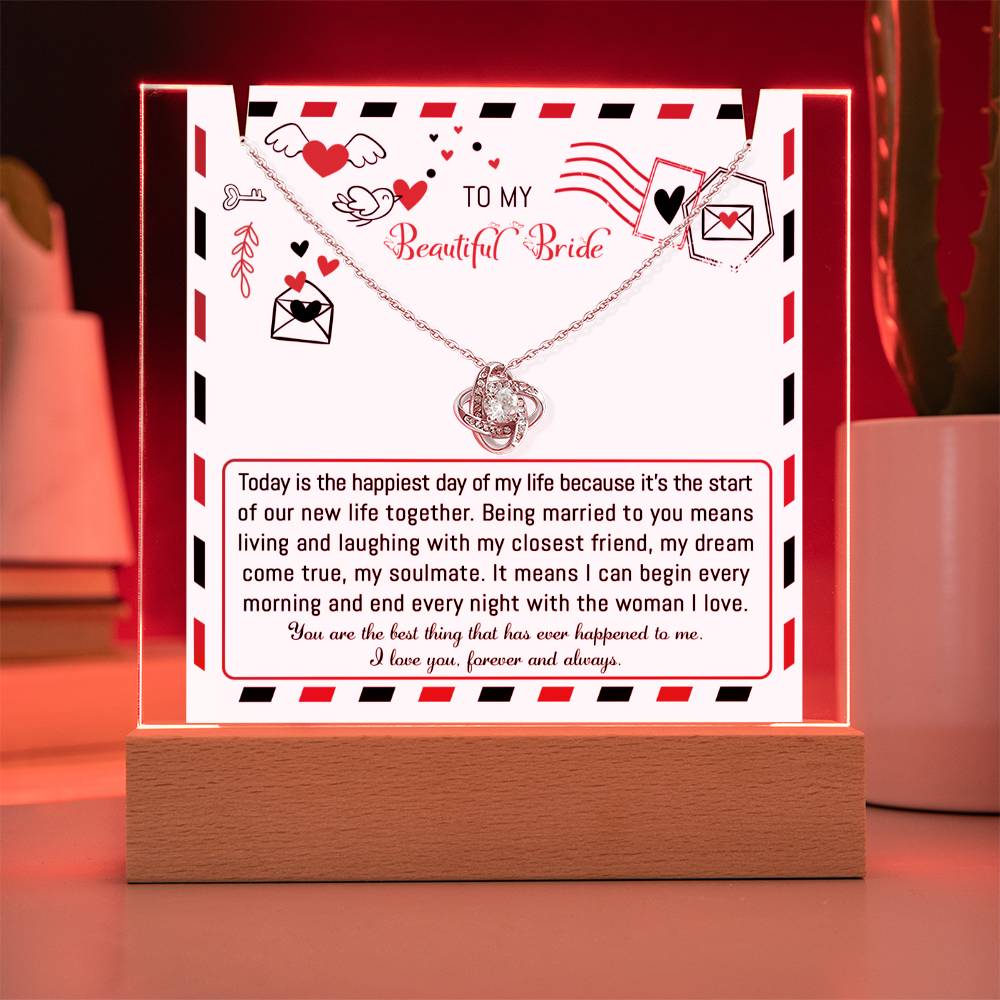 Celebrate your love and appreciation with our elegant Keepsake Acrylic Bundle, featuring a stunning Square Acrylic and the beautiful Love Knot Necklace. The design is showcased on crystal-clear acrylic, making this set a striking focal point in any space. Paired with the charming Love Knot Necklace, this bundle is the perfect gift for anniversaries, birthdays, or any special occasion when you want to make a lasting impression.