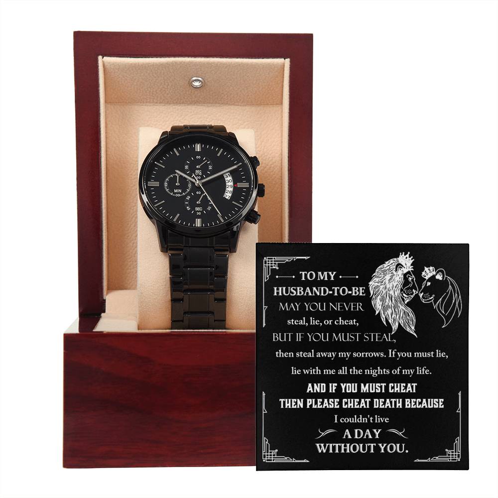 A handsome gift that can withstand constant use, this Black Chronograph Watch is perfect for all the special men in your life. A thoughtful present to your groomsmen, an anniversary memento, or a long-lasting keepsake for Father’s Day - it's a versatile piece sure to warm hearts and create smiles. Featuring a three-dial face, calendar function, and luxury pointer in a water-resistant and scratch-proof vessel.