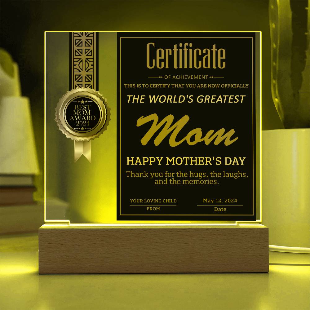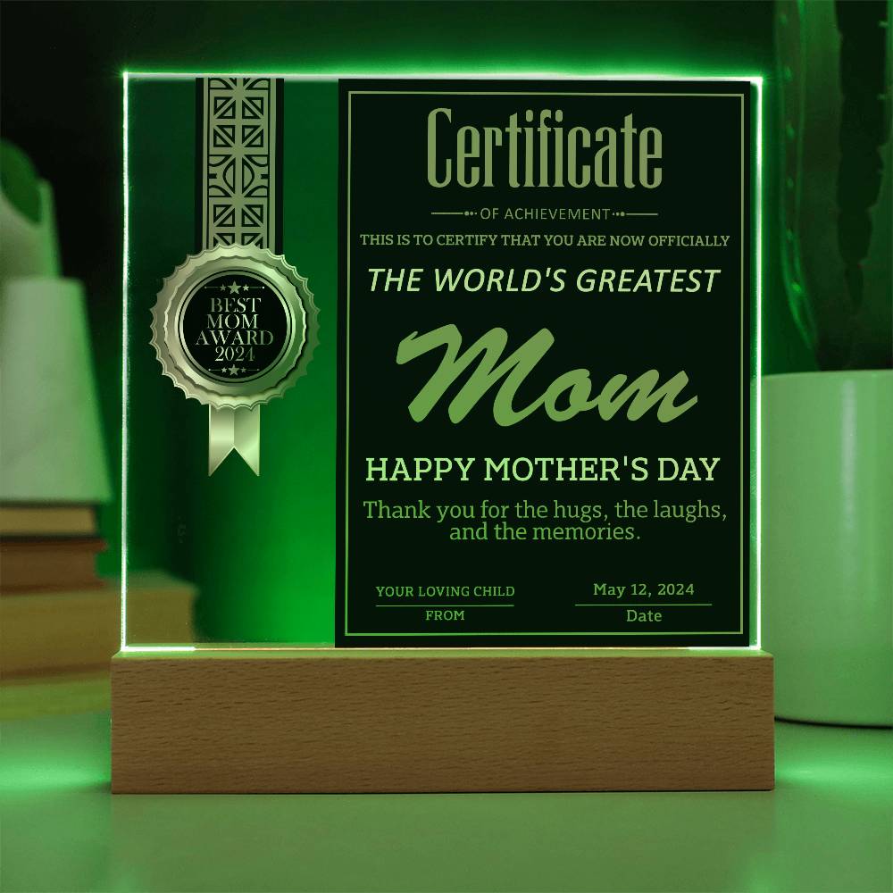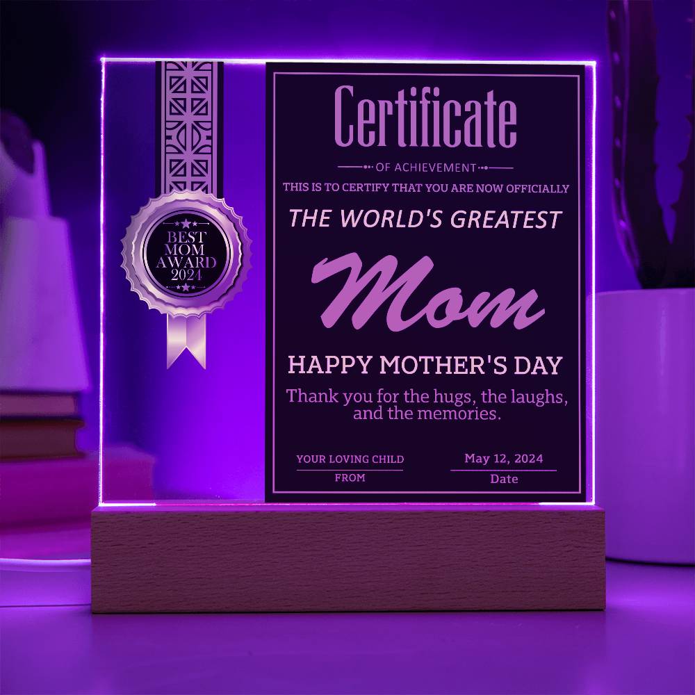 Your plaque will be crafted from premium acrylic with a professionally printed design for a polished look. It comes with a stylish wooden LED base, and you can choose between a USB plug-in option OR a cordless battery-operated option (requires 2 AAA batteries, not included). Both LED bases feature 7 vibrant colors, allowing the user to customize the lighting with various color changes and dynamic cycles.