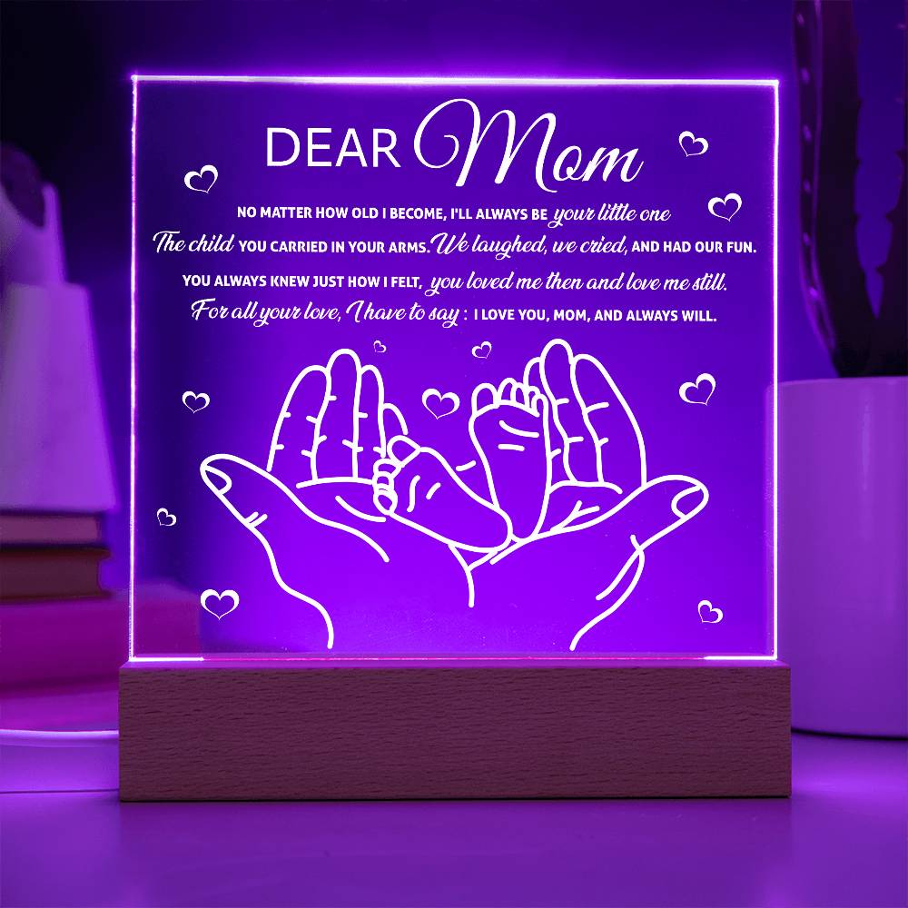 Your plaque will be crafted from premium acrylic with a professionally printed design for a polished look. It comes with a stylish wooden LED base, and you can choose between a USB plug-in option OR a cordless battery-operated option (requires 2 AAA batteries, not included). Both LED bases feature 7 vibrant colors, allowing the user to customize the lighting with various color changes and dynamic cycles.