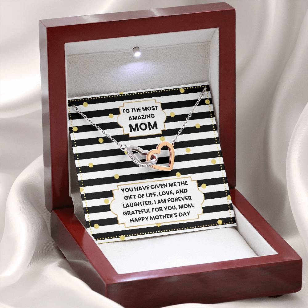 JGF Jewelry Gifts for Family Two 2 Hearts Connected Necklace For Mom on Mother's Day