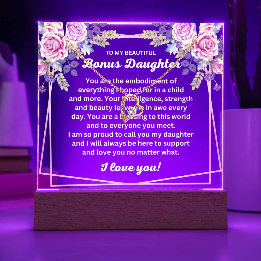Celebrate your love and appreciation with our elegant Keepsake Acrylic Bundle, featuring a stunning Square Acrylic Plaque and the beautiful Forever Love Heart Necklace. The design is showcased on crystal-clear acrylic, making this set a striking focal point in any space. Paired with the charming Forever Love Heart Necklace, this bundle is the perfect gift for anniversaries, wedding, birthdays, graduation, bereavement, or any special occasion when you want to make a lasting impression.