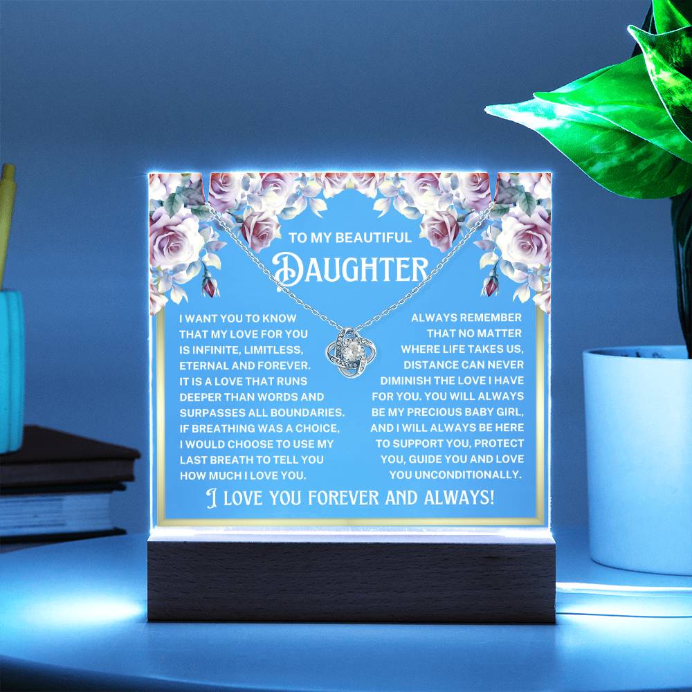 JGF Jewelry Gifts For Family To My Daughter Necklace and Acrylic Plaque with Base From Mom And Dad
