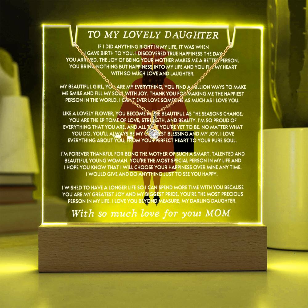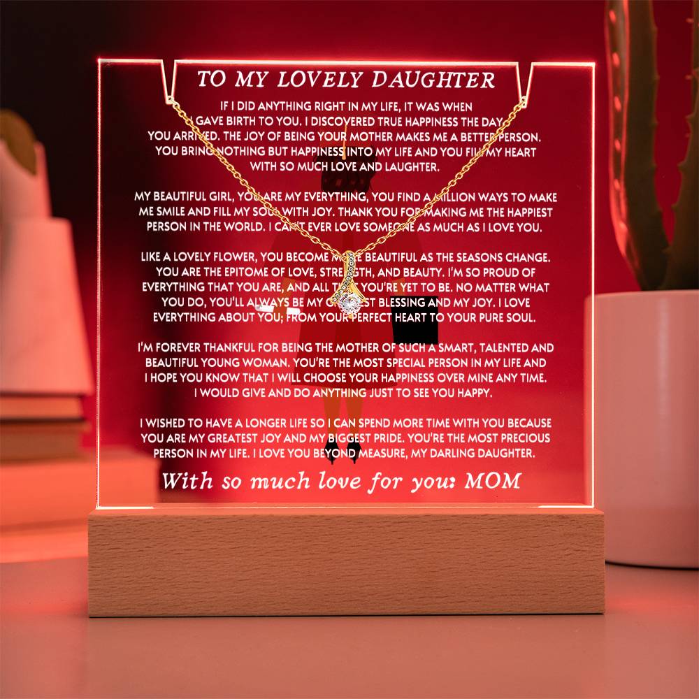 Celebrate your love and appreciation with our elegant Keepsake Acrylic Bundle, featuring a stunning Square Acrylic Plaque and the beautiful Alluring Beauty Necklace. The design is showcased on crystal-clear acrylic plaque, making this set a striking focal point in any space. Paired with the charming Alluring Beauty Necklace, this bundle is the perfect gift for anniversaries, birthdays, or any special occasion when you want to make a lasting impression.