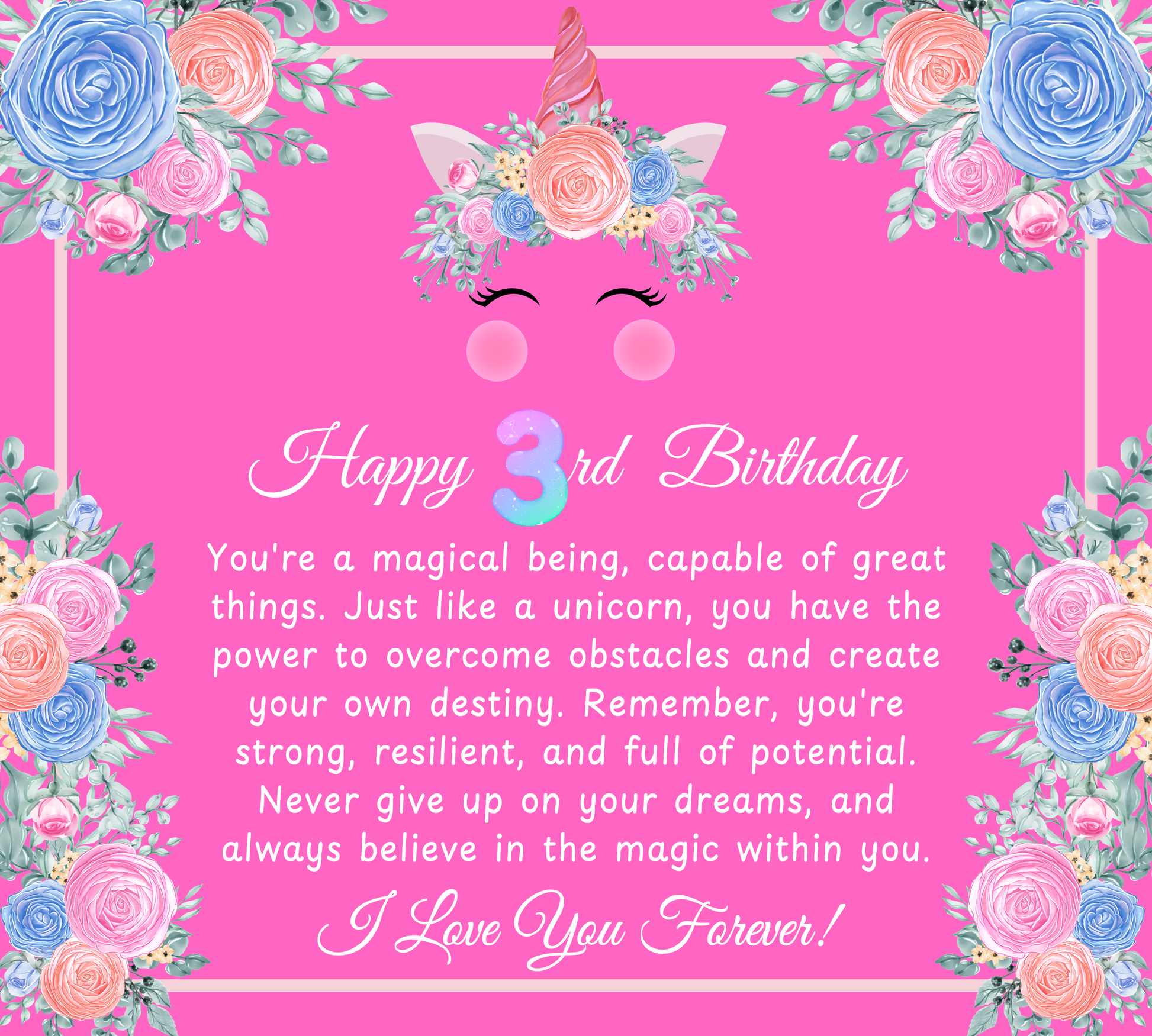 JGF 3-5 Unicorn Necklace For Girls 3 Year Old Happy 3rd Birthday Plaque Decorations