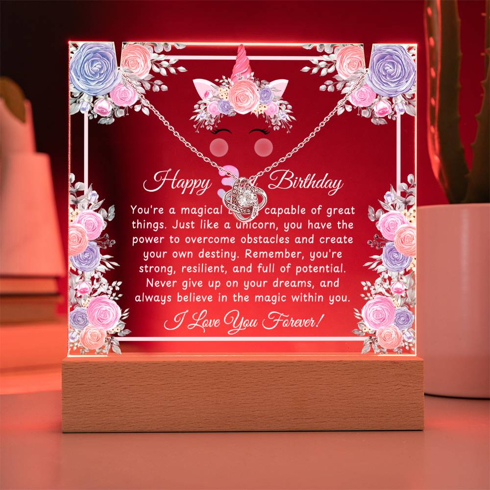 THE ACRYLIC PLAQUE: This stunning plaque that illuminates with a mesmerizing array of colors to create a magical atmosphere and features an inspiring message that will remind your child of your unwavering love and support.