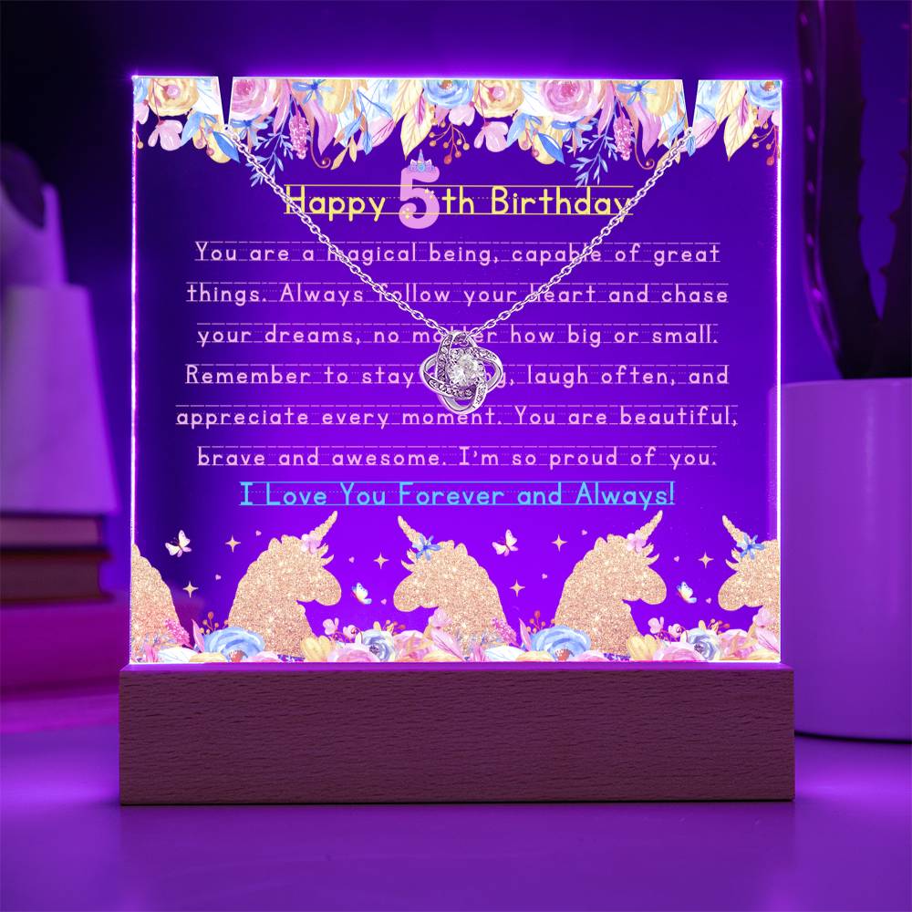 JGF Unicorn Necklace For Girls 5 Year Old 4-6 Happy 5th Birthday Plaque Decorations