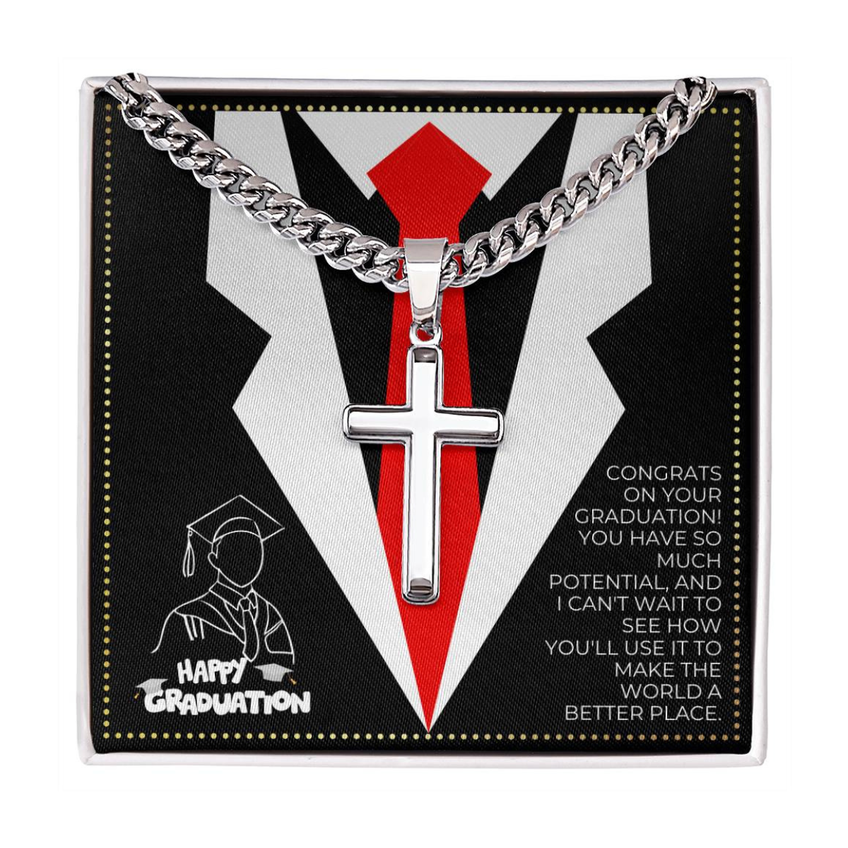 Wear your faith proudly with this Cuban Chain with Artisan Cross Necklace. Perfect for special occasions or everyday wear, this makes a wonderful gift idea for you or your loved one. It will surely be treasured for years to come!