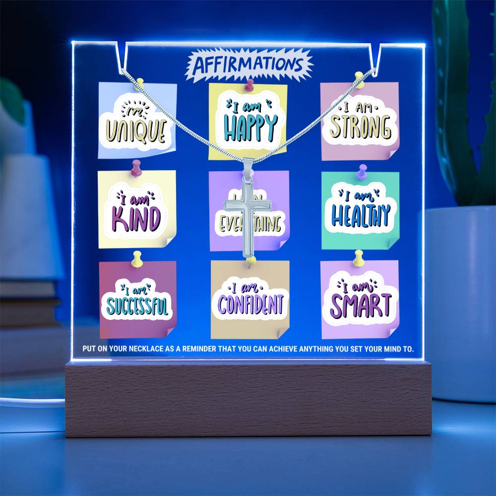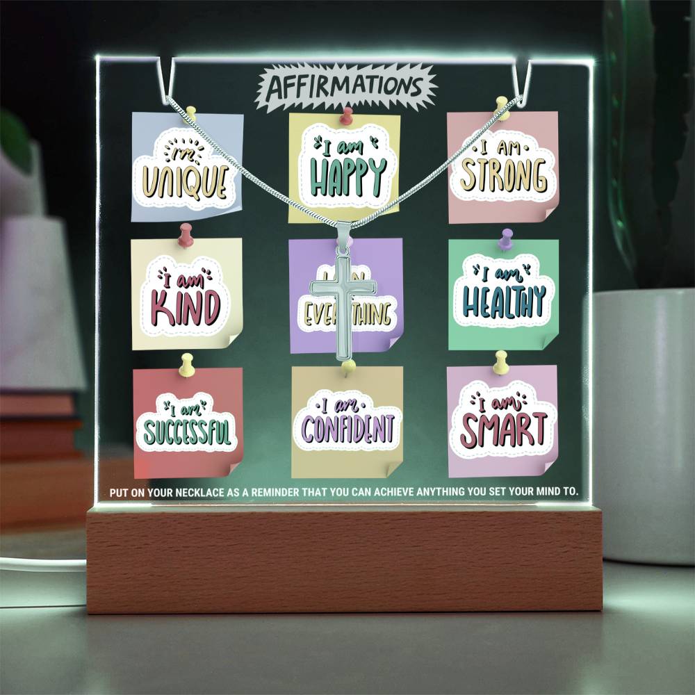 JGF Jewelry Gifts For Family Necklace and Acrylic Note To Self Plaque Multicolor Display LED