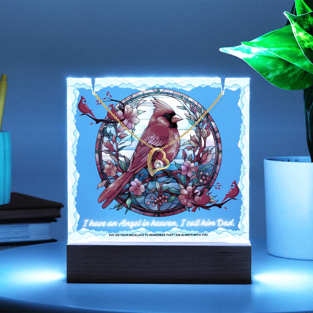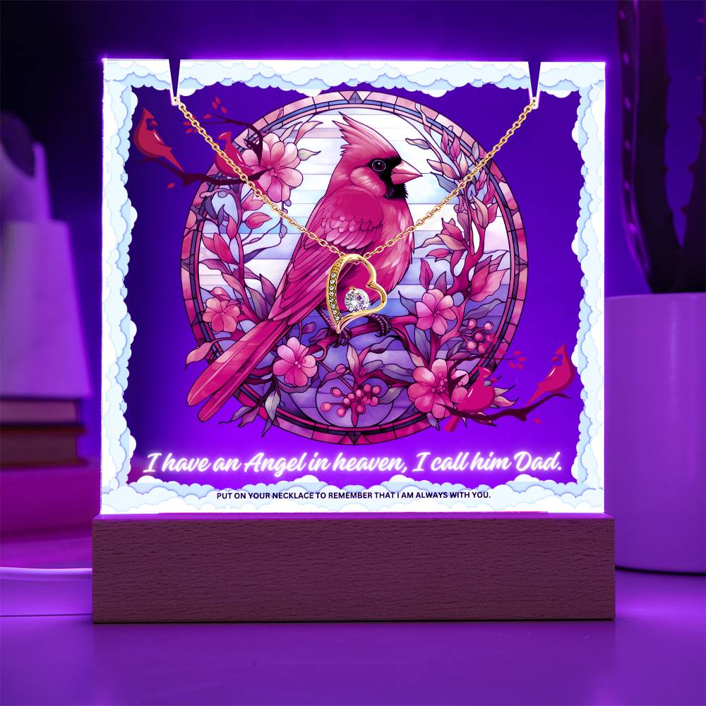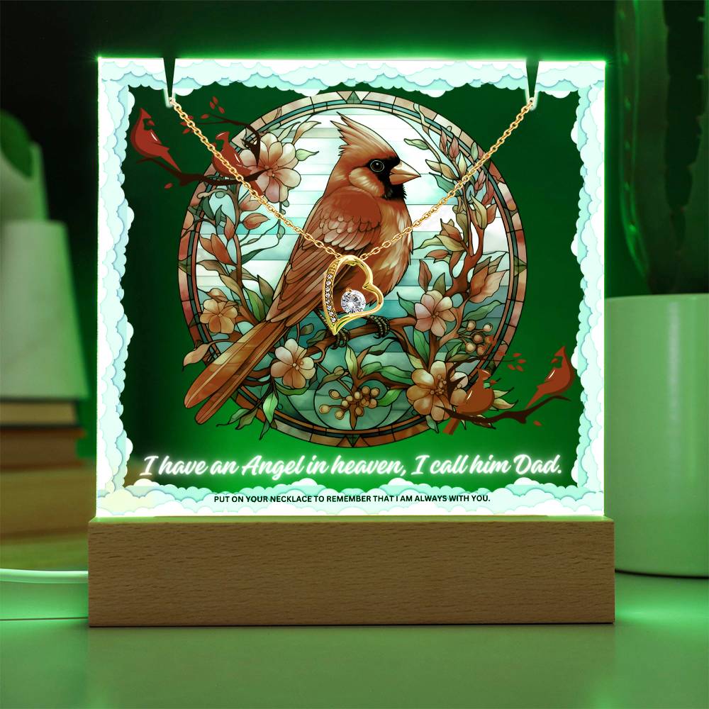 JGF Jewelry Gifts For Family Cardinal Red Birds Sympathy Acrylic Sign I Call Him Dad Heart Necklace