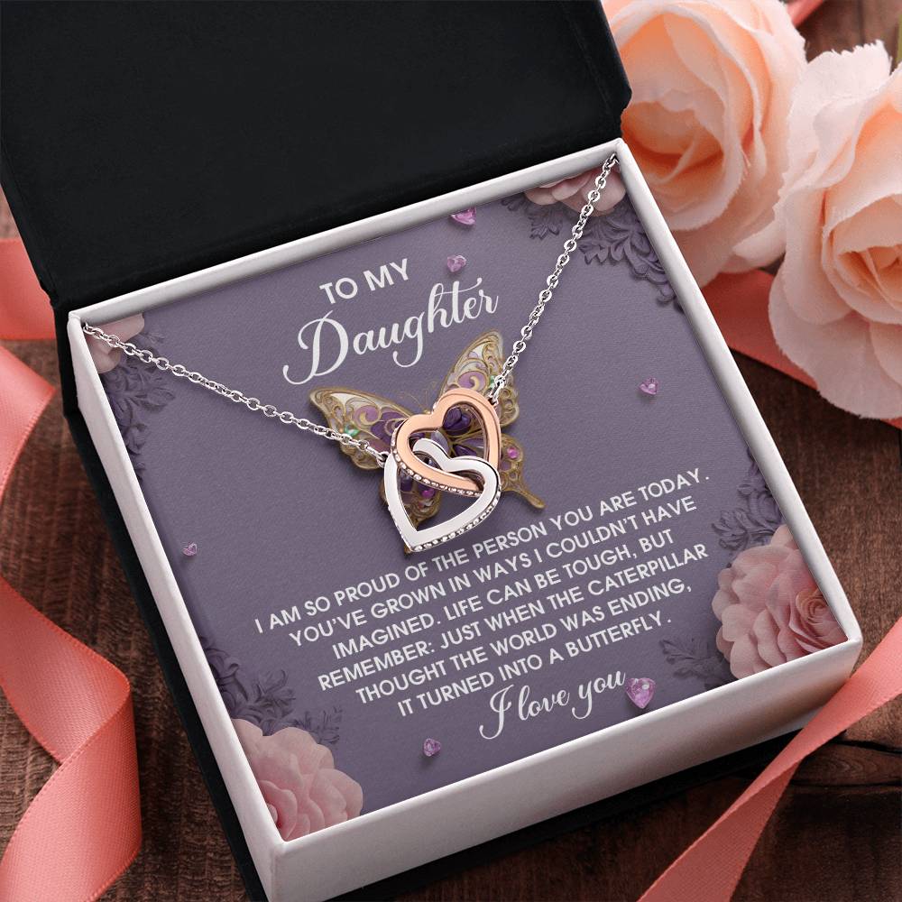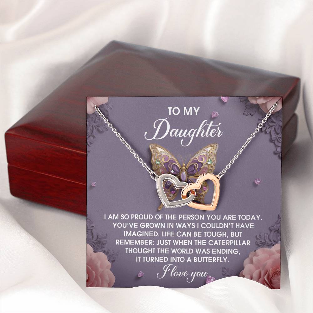 Featuring two lovely hearts embellished with cubic zirconia crystals, this Interlocking Hearts necklace is the perfect accessory for everyday wear. It's a memorable and very special birthday, graduation, wedding, Christmas, or any holiday occasion gift for your lovely daughter.,