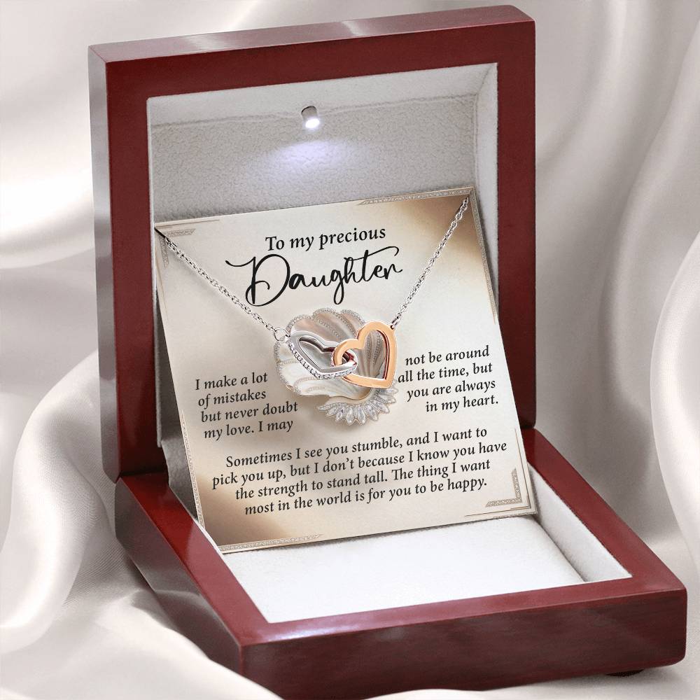 Featuring two lovely hearts embellished with cubic zirconia crystals, this Interlocking Hearts necklace is the perfect accessory for everyday wear. It's a memorable and very special birthday, graduation, wedding, Christmas, or any holiday occasion gift for your lovely daughter.,