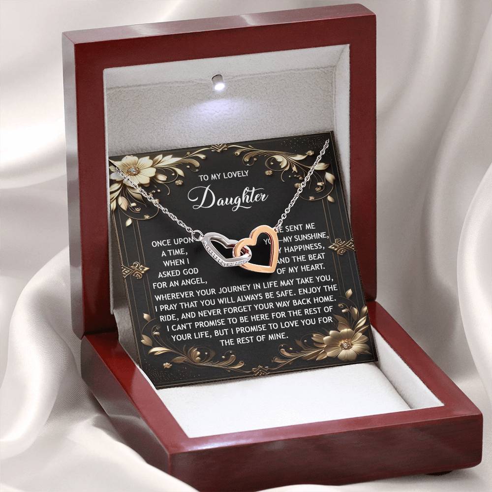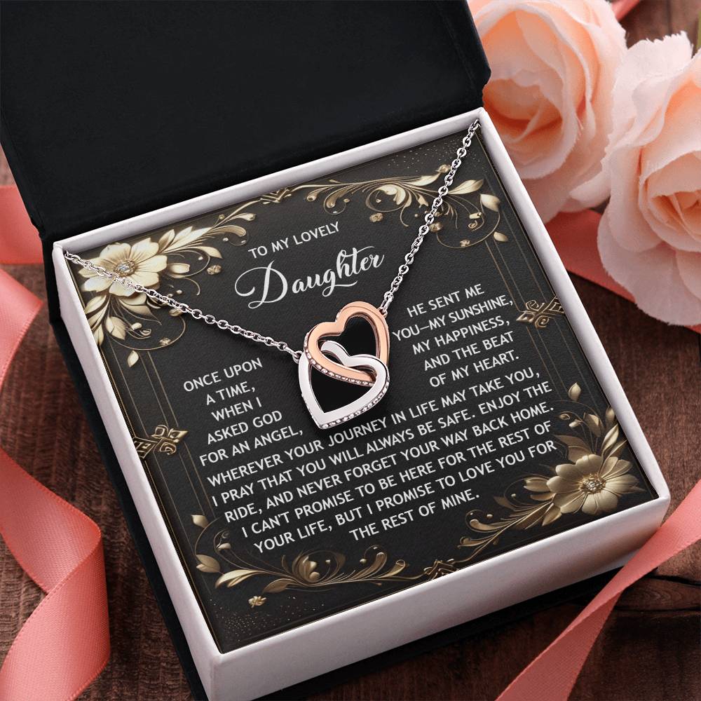 Featuring two lovely hearts embellished with cubic zirconia crystals, this Interlocking Hearts necklace is the perfect accessory for everyday wear. It's a memorable and very special birthday, graduation, wedding, Christmas, or any holiday occasion gift for your lovely daughter.,