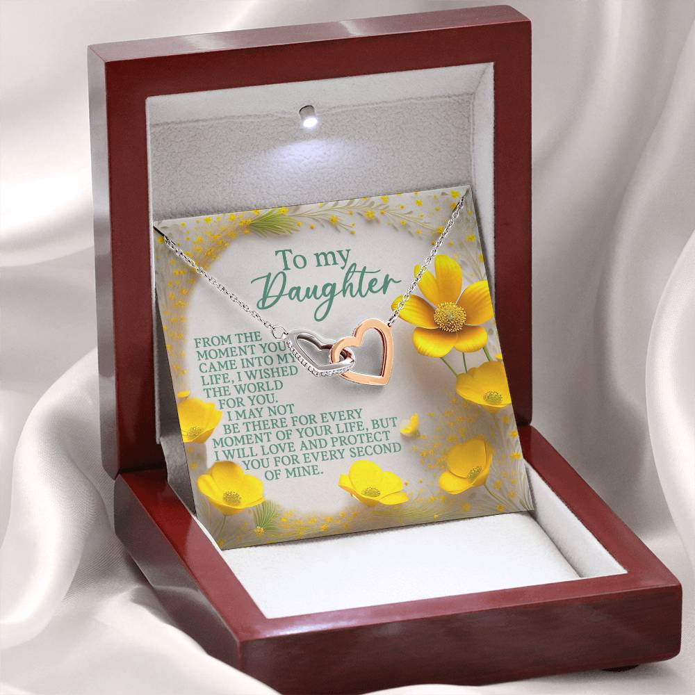Featuring two lovely hearts embellished with cubic zirconia crystals, this Interlocking Hearts necklace is the perfect accessory for everyday wear. It's a memorable and very special birthday, graduation, wedding, Christmas, or any holiday occasion gift for your lovely daughter.,