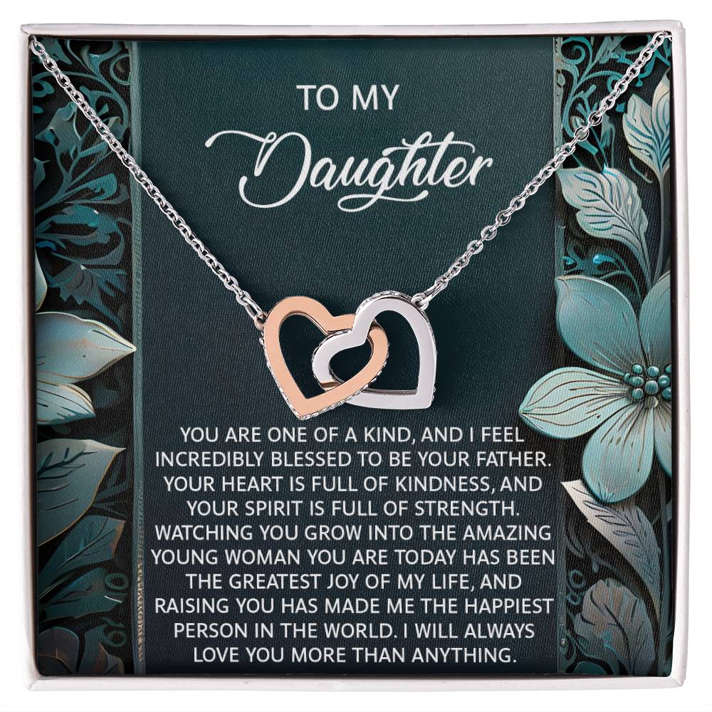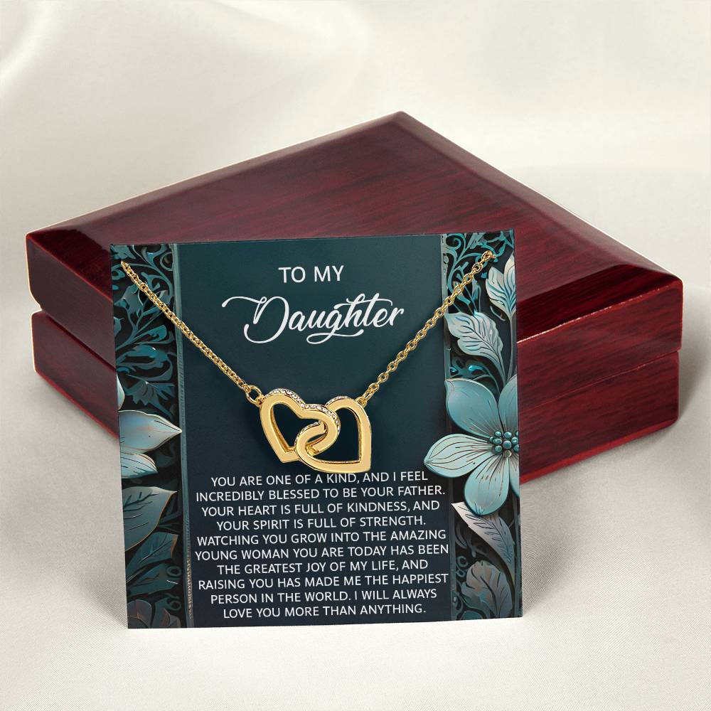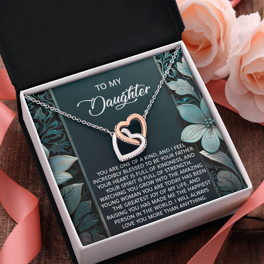 Featuring two lovely hearts embellished with cubic zirconia crystals, this Interlocking Hearts necklace is the perfect accessory for everyday wear. It's a memorable and very special birthday, graduation, wedding, Christmas, or any holiday occasion gift for your lovely daughter.,