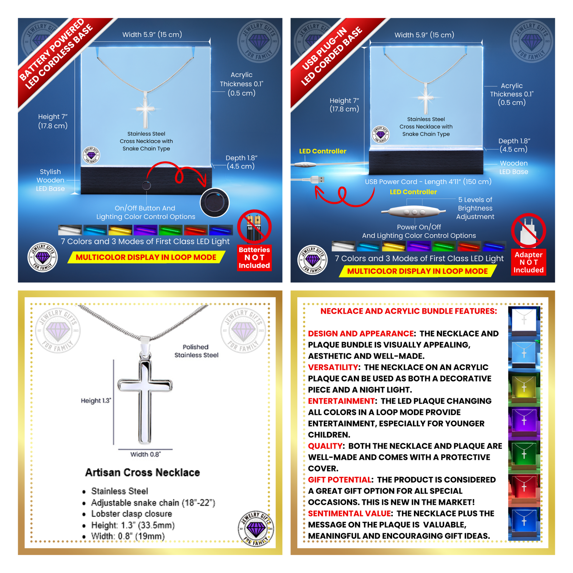 THE ACRYLIC PLAQUE: This stunning plaque that illuminates with a mesmerizing array of colors to create a magical atmosphere and features an inspiring message that will remind your child of your unwavering love and support.