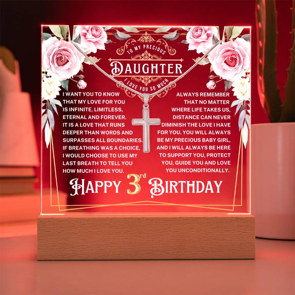 THE ACRYLIC PLAQUE: This stunning plaque that illuminates with a mesmerizing array of colors to create a magical atmosphere and features an inspiring message that will remind your child of your unwavering love and support.
