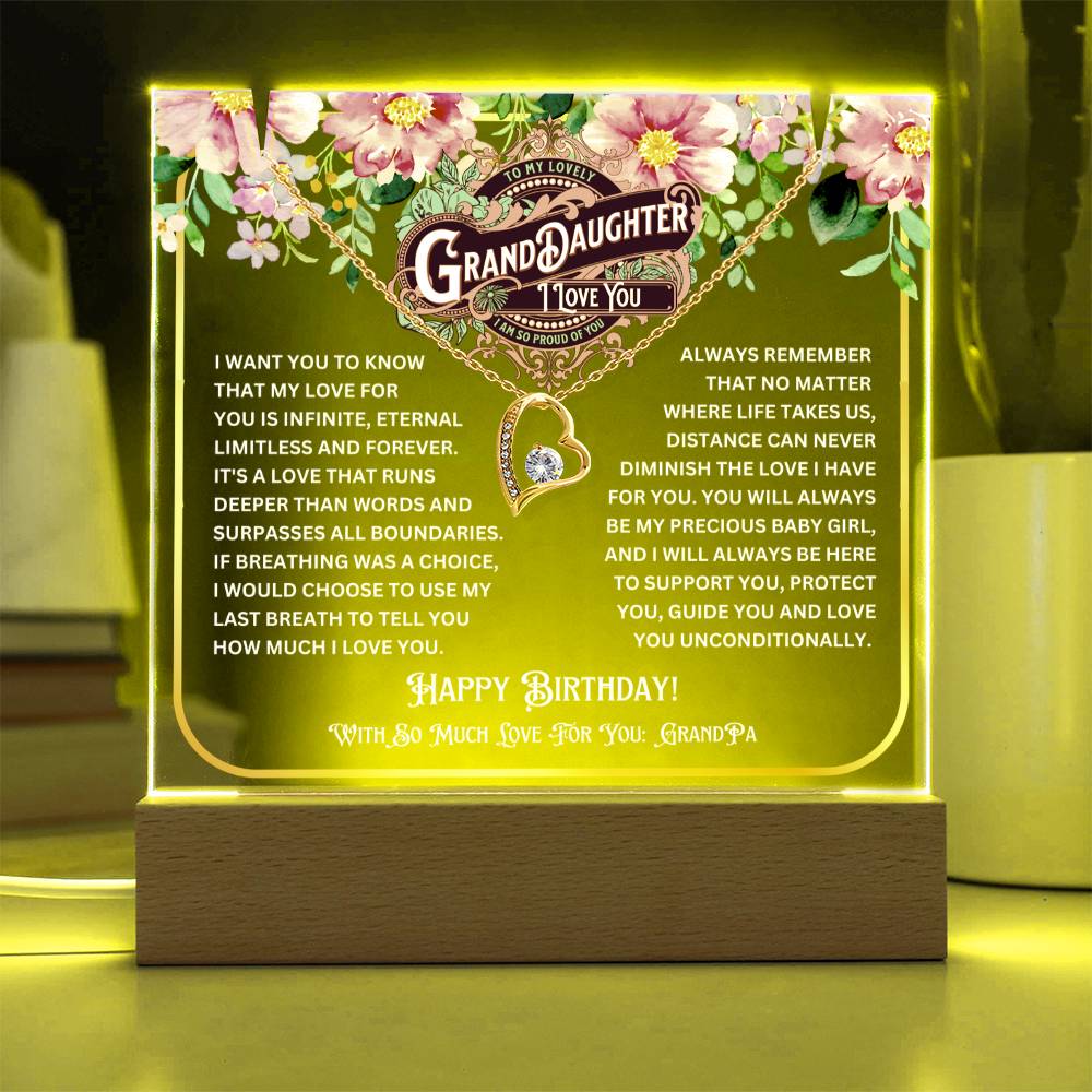 JGF Jewelry Gifts For Family To My Granddaughter Plaque and Heart Necklace For Her Birthday From Grandpa