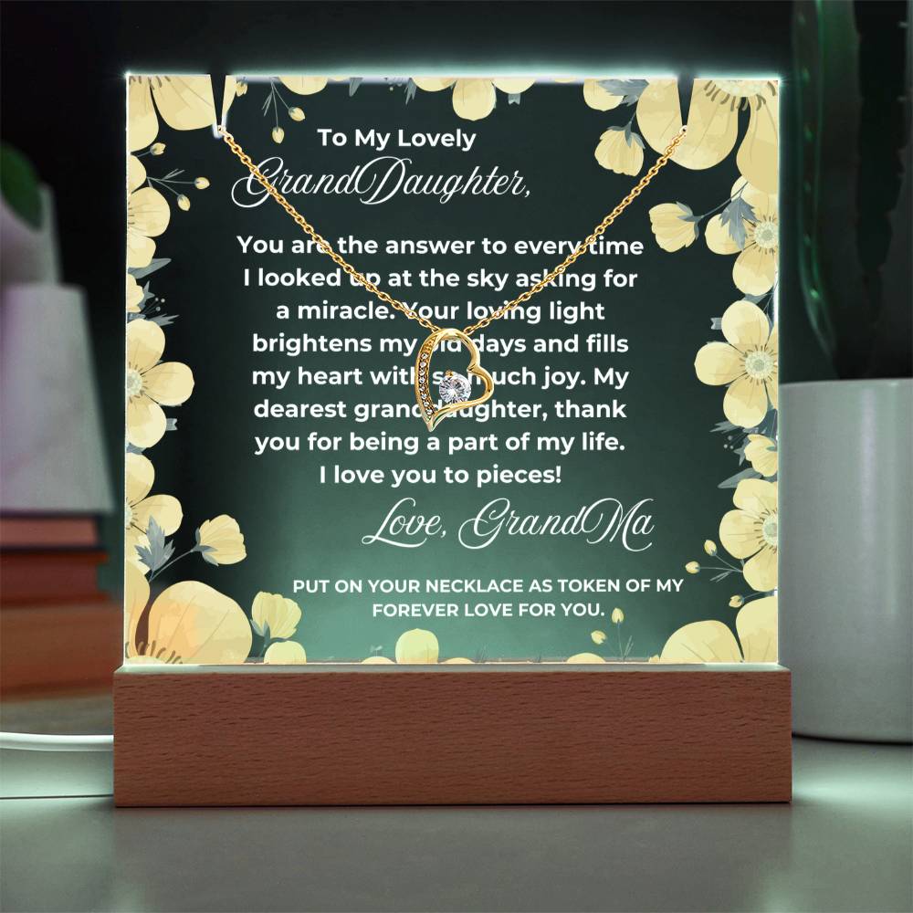 JGF Jewelry Gifts For Family To My Granddaughter Acrylic Plaque and Necklace Bundle From Grandma