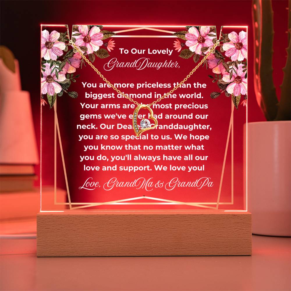 JGF Jewelry Gifts For Family To Our Granddaughter Acrylic Plaque and Necklace From Grandma and Grandpa