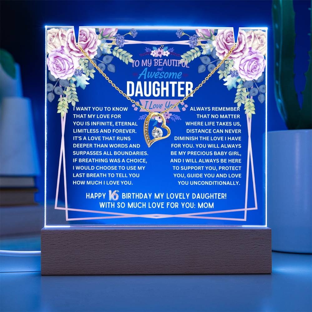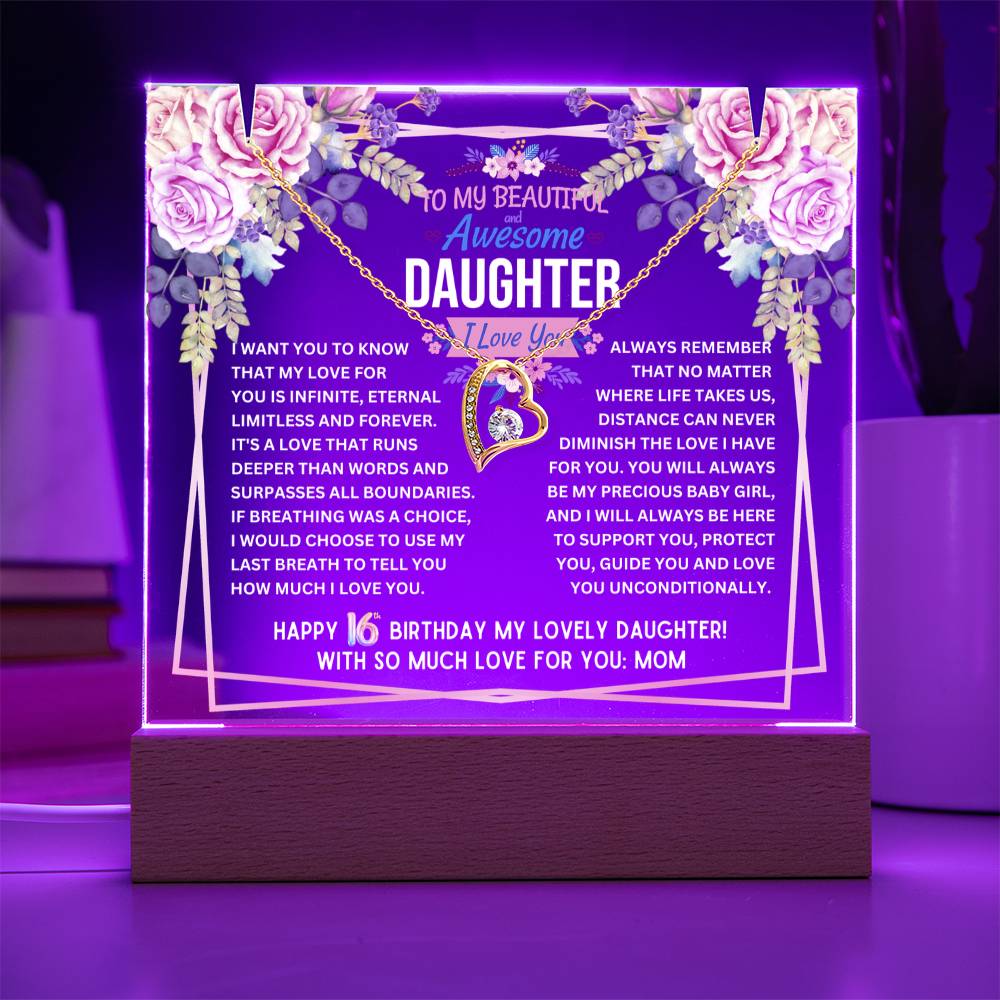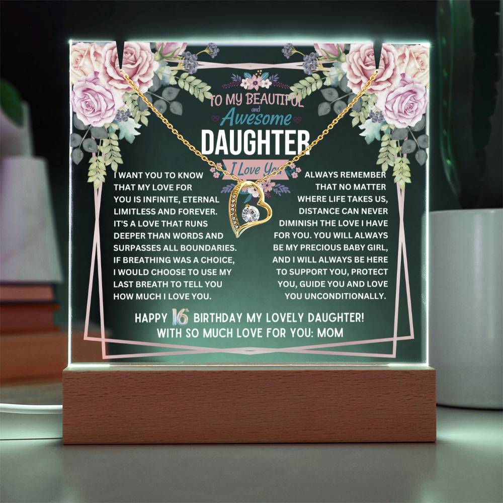 JGF Jewelry Gifts For Family To My Daughter Acrylic Plaque and Heart Necklace for Her 16th Birthday from Mom