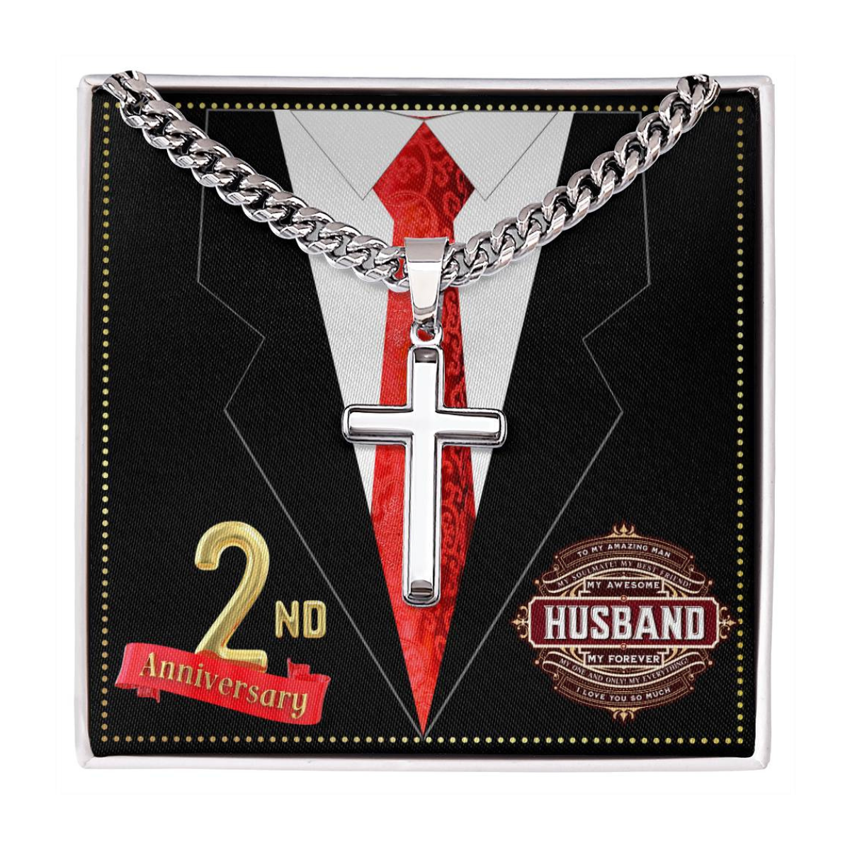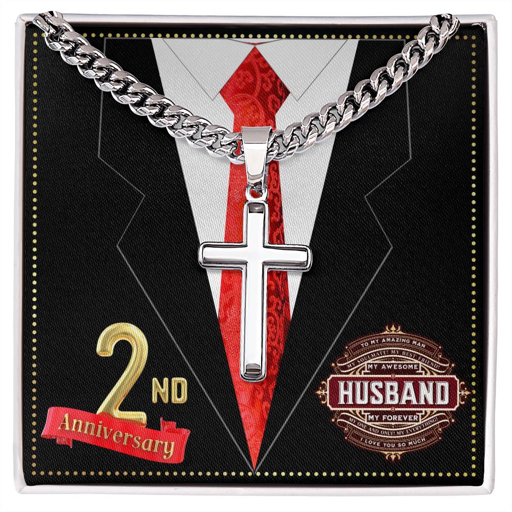 JGF Jewelry Gifts for Family 2 Year 2nd Wedding Anniversary for Him Husband Cross Necklace for Men
