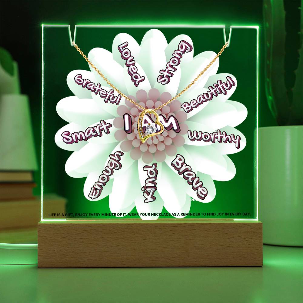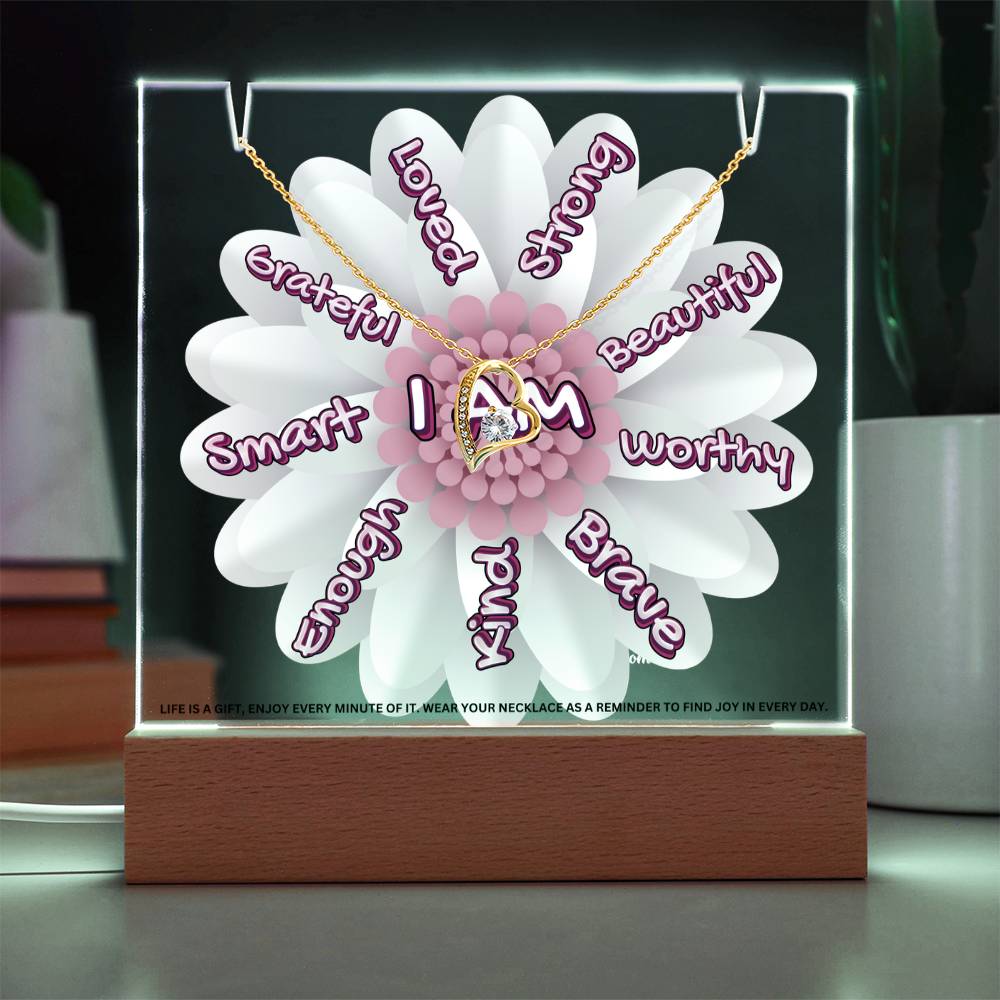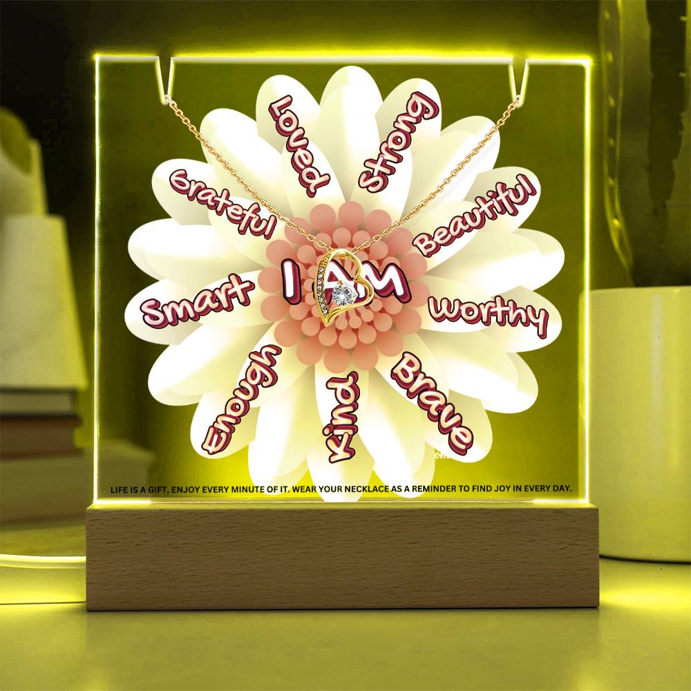 JGF Jewelry Gifts For Family I Am Affirmations Gifts For Kids Boys and Girls For Classroom with Heart Necklace on Acrylic Plaque Sign