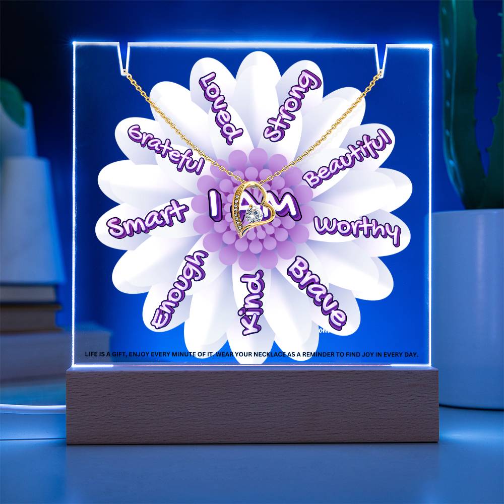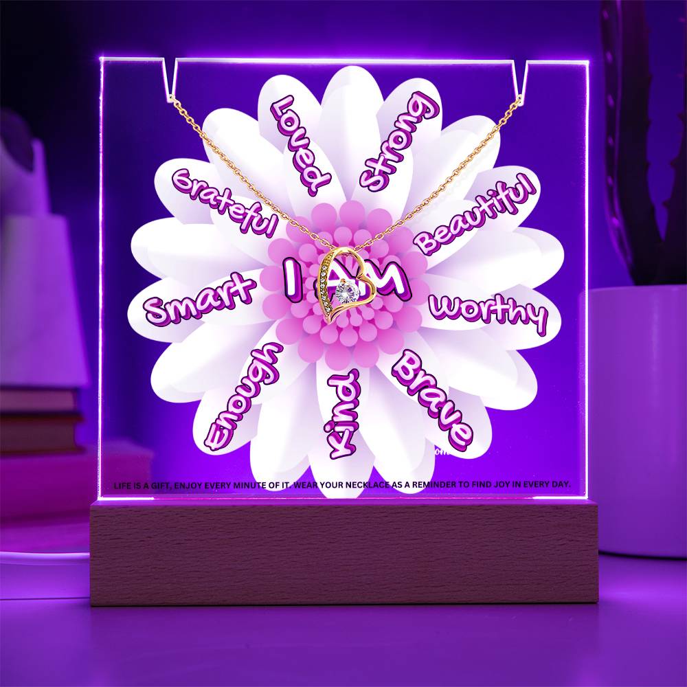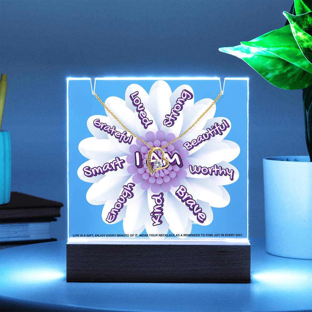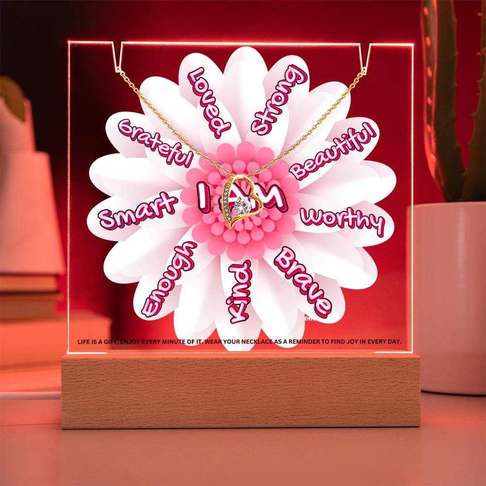JGF Jewelry Gifts For Family I Am Affirmations Gifts For Kids Boys and Girls For Classroom with Heart Necklace on Acrylic Plaque Sign