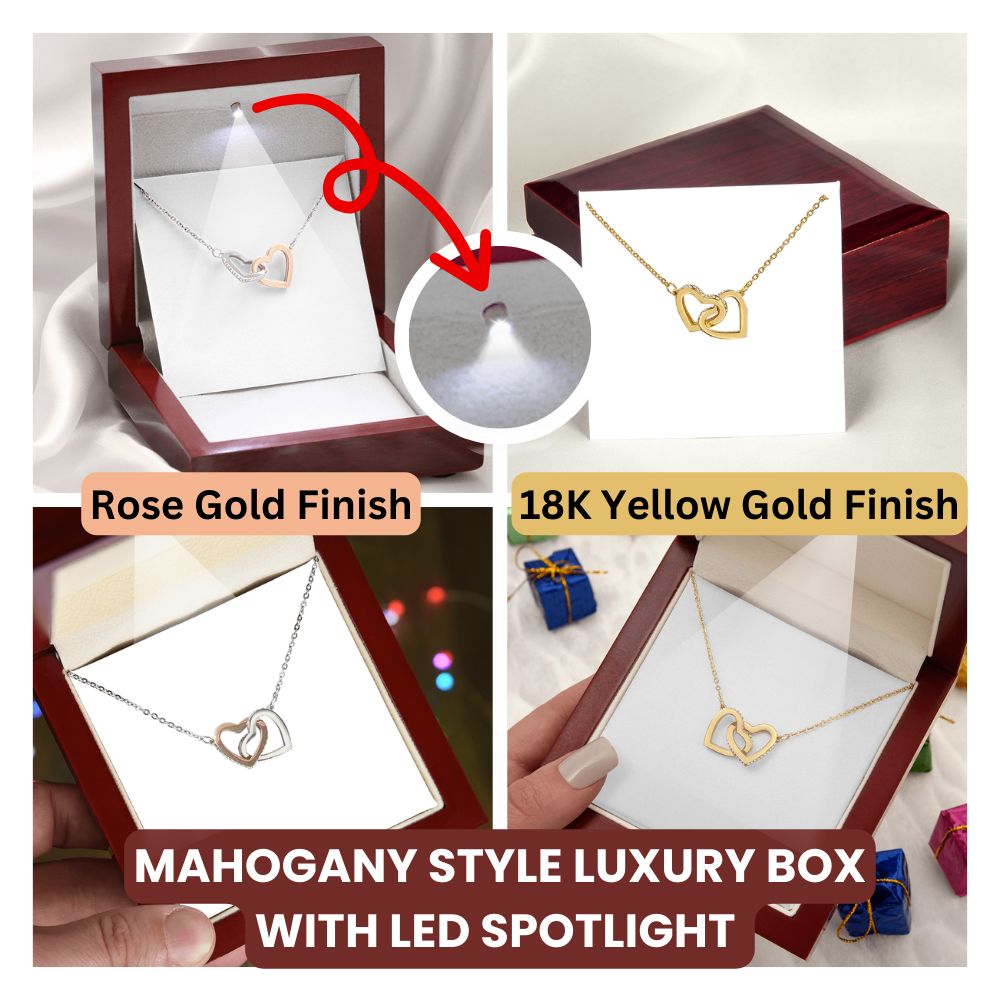 Featuring two lovely hearts embellished with cubic zirconia crystals, this Interlocking Hearts necklace is the perfect accessory for everyday wear. It's a memorable and very special birthday, graduation, wedding, Christmas, or any holiday occasion gift for your lovely daughter.,