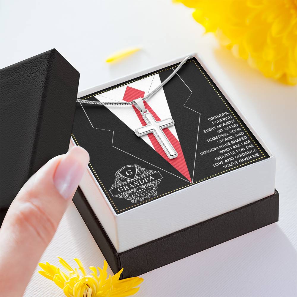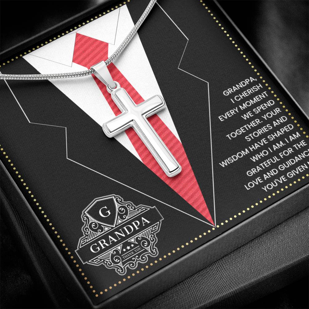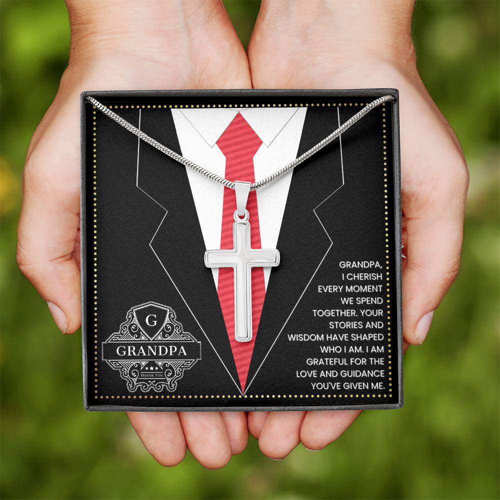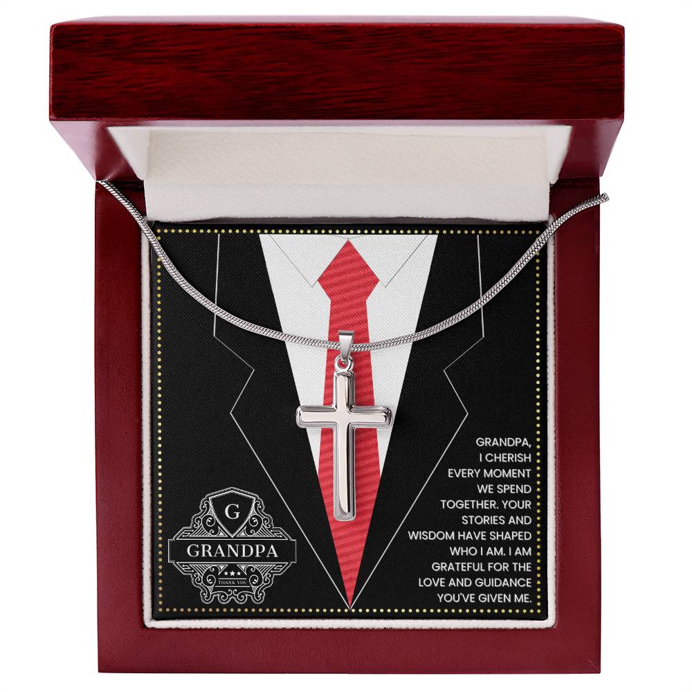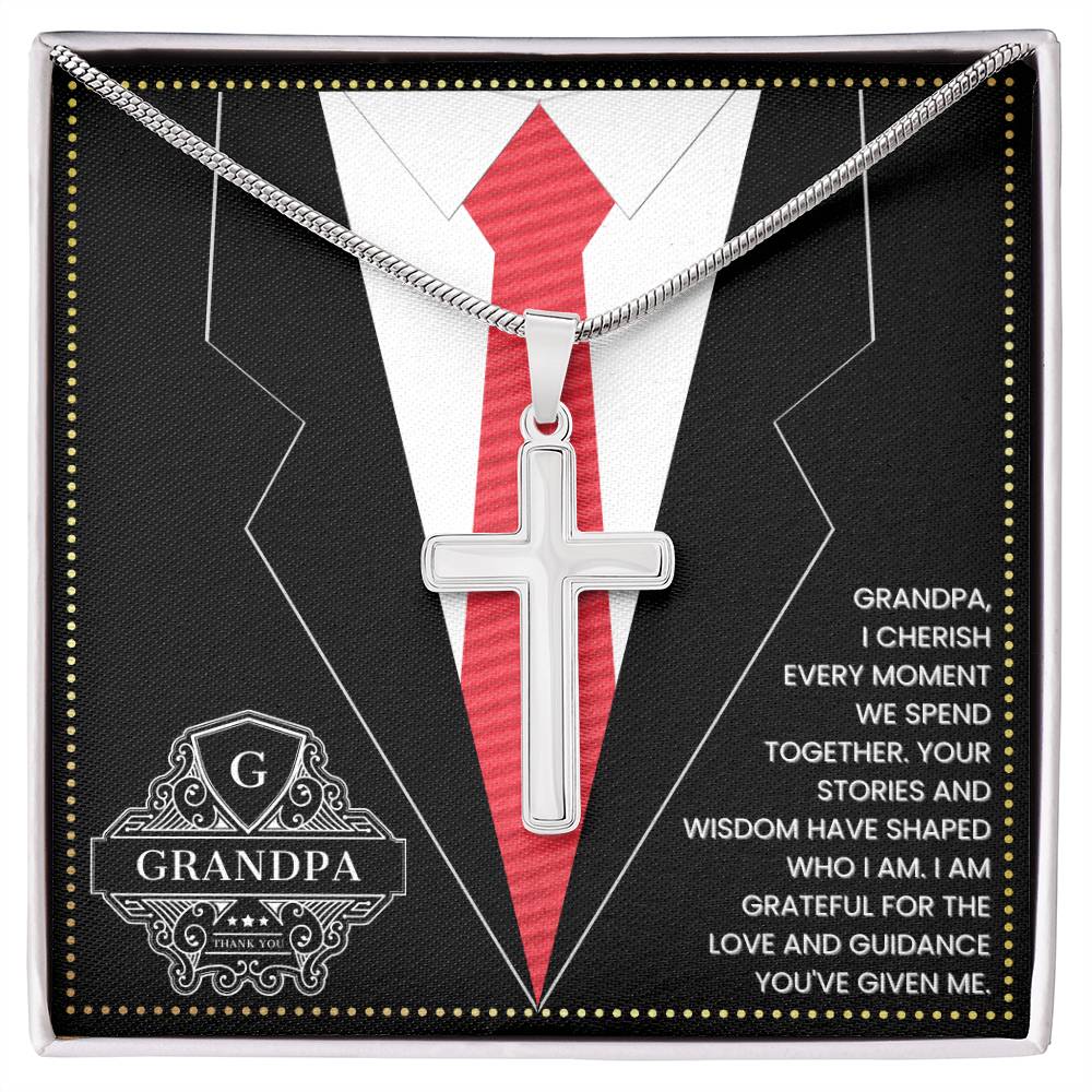JGF Jewelry Gifts for Family First Time Grandpa Gifts Christian Cross Necklace For Men Silver