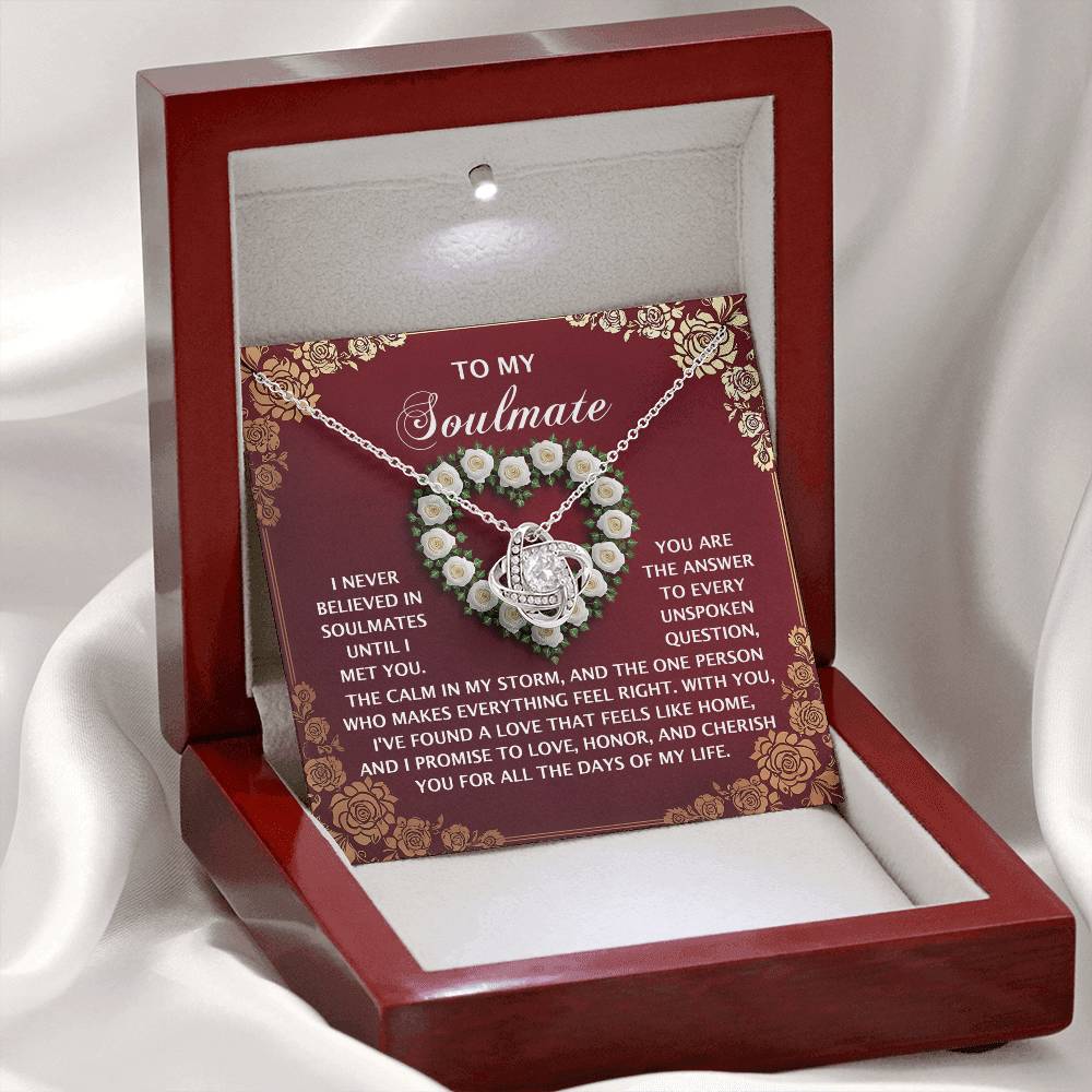 The intricate knot design represents the intertwining of two souls and the unbreakable connection between them. The knot often doesn't have a beginning or an end, mirroring the idea of eternal love that has no boundaries.