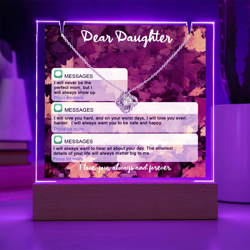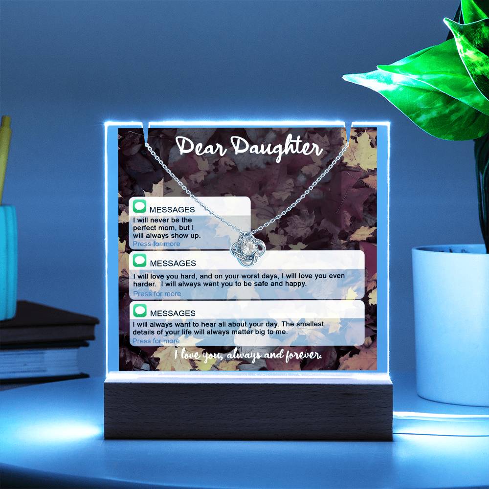 Celebrate your love and appreciation with our elegant Keepsake Acrylic Bundle, featuring a stunning Square Acrylic Plaque and the beautiful Love Knot Necklace. The design is showcased on crystal-clear acrylic, making this set a striking focal point in any space. Paired with the charming Love Knot Necklace, this bundle is the perfect gift for anniversaries, birthdays, wedding, Christmas, graduation, bereavement or any special occasion when you want to make a lasting impression.