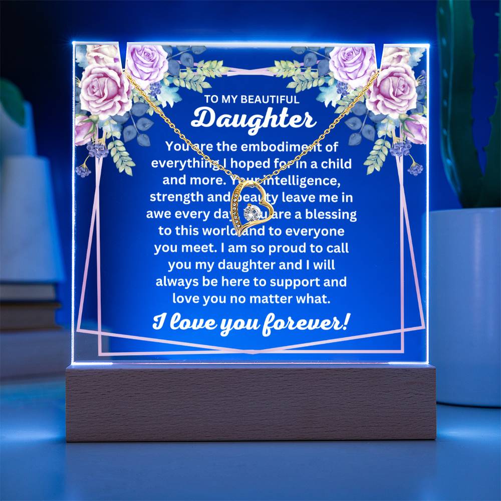 Celebrate your love and appreciation with our elegant Keepsake Acrylic Bundle, featuring a stunning Square Acrylic Plaque and the beautiful Forever Love Heart Necklace. The design is showcased on crystal-clear acrylic, making this set a striking focal point in any space. Paired with the charming Forever Love Heart Necklace, this bundle is the perfect gift for anniversaries, wedding, birthdays, graduation, bereavement, or any special occasion when you want to make a lasting impression.