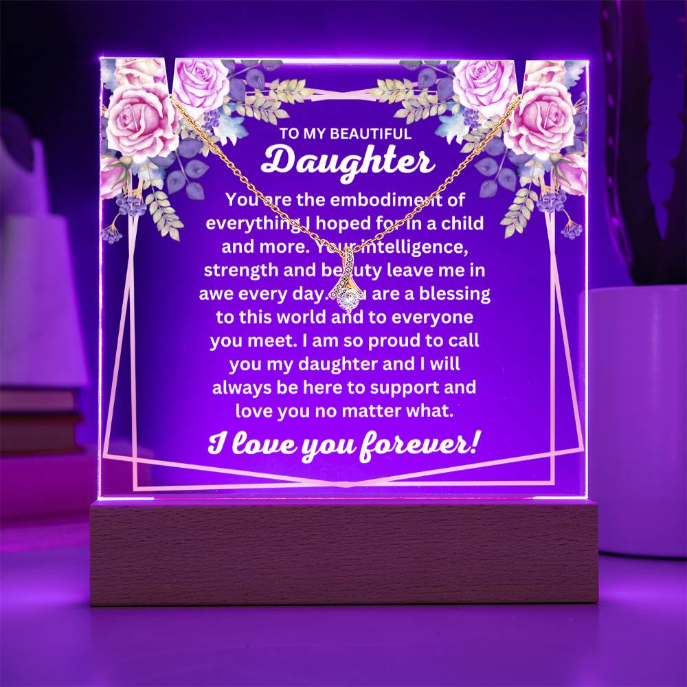 Celebrate your love and appreciation with our elegant Keepsake Acrylic Bundle, featuring a stunning Square Acrylic Plaque and the beautiful Alluring Beauty Necklace. The design is showcased on crystal-clear acrylic, making this set a striking focal point in any space. Paired with the charming Alluring Beauty Necklace, this bundle is the perfect gift for anniversaries, birthdays, Christmas, wedding, graduation, bereavement or any special occasion when you want to make a lasting impression.